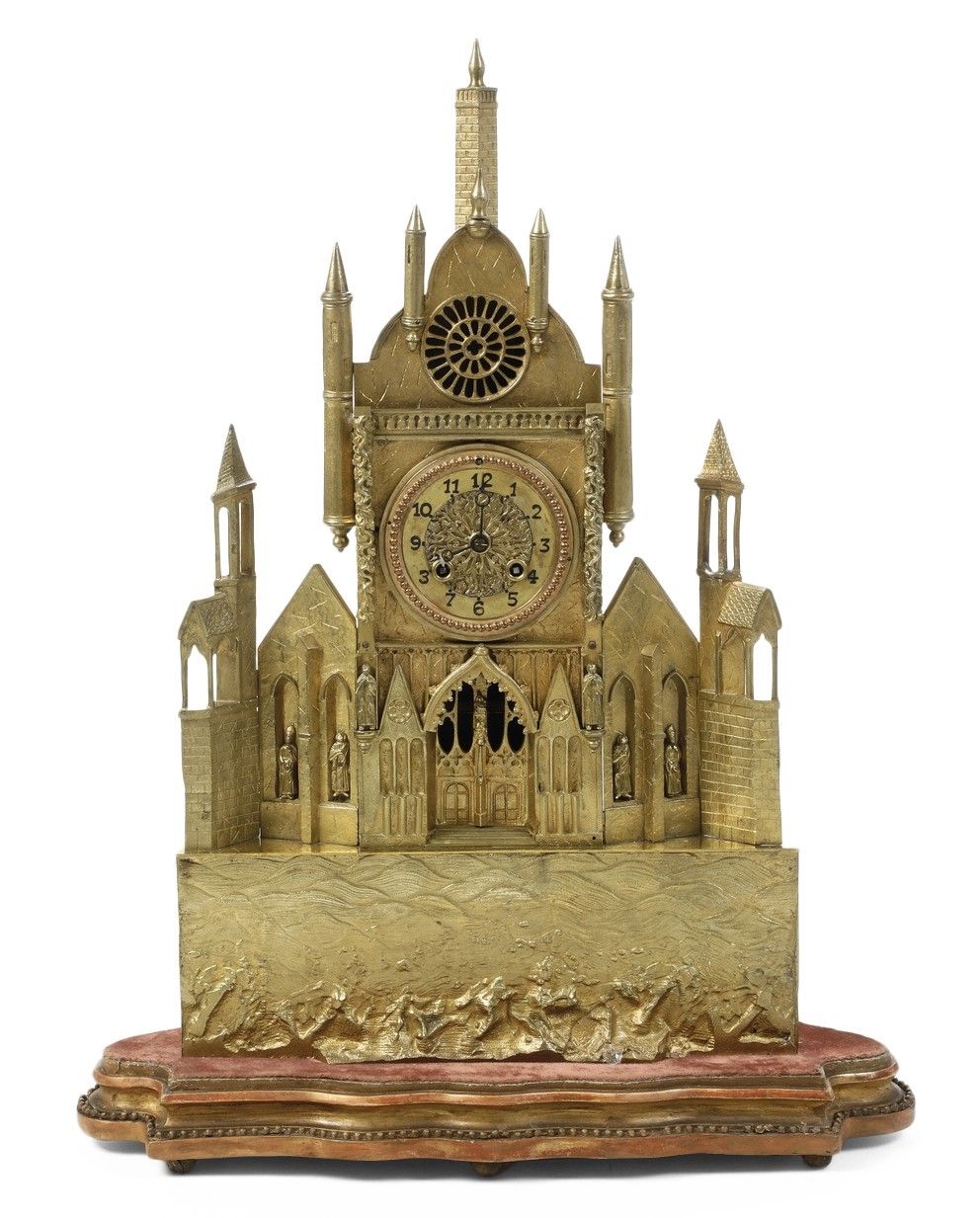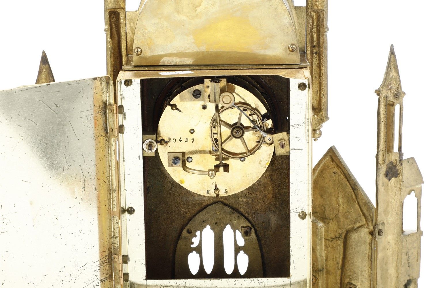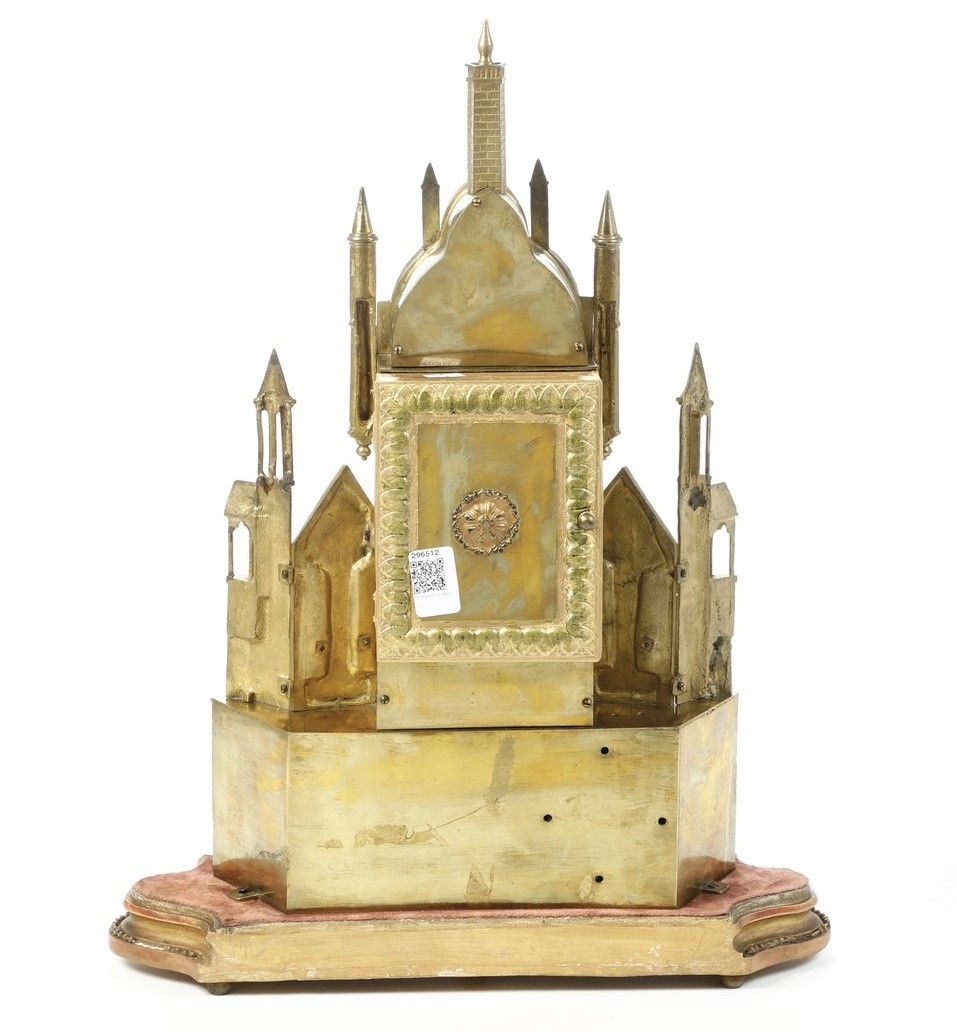 Pendola tavolo in bronzo dorato e cesellato a foggia architettonica. XIX-XX seco [..]