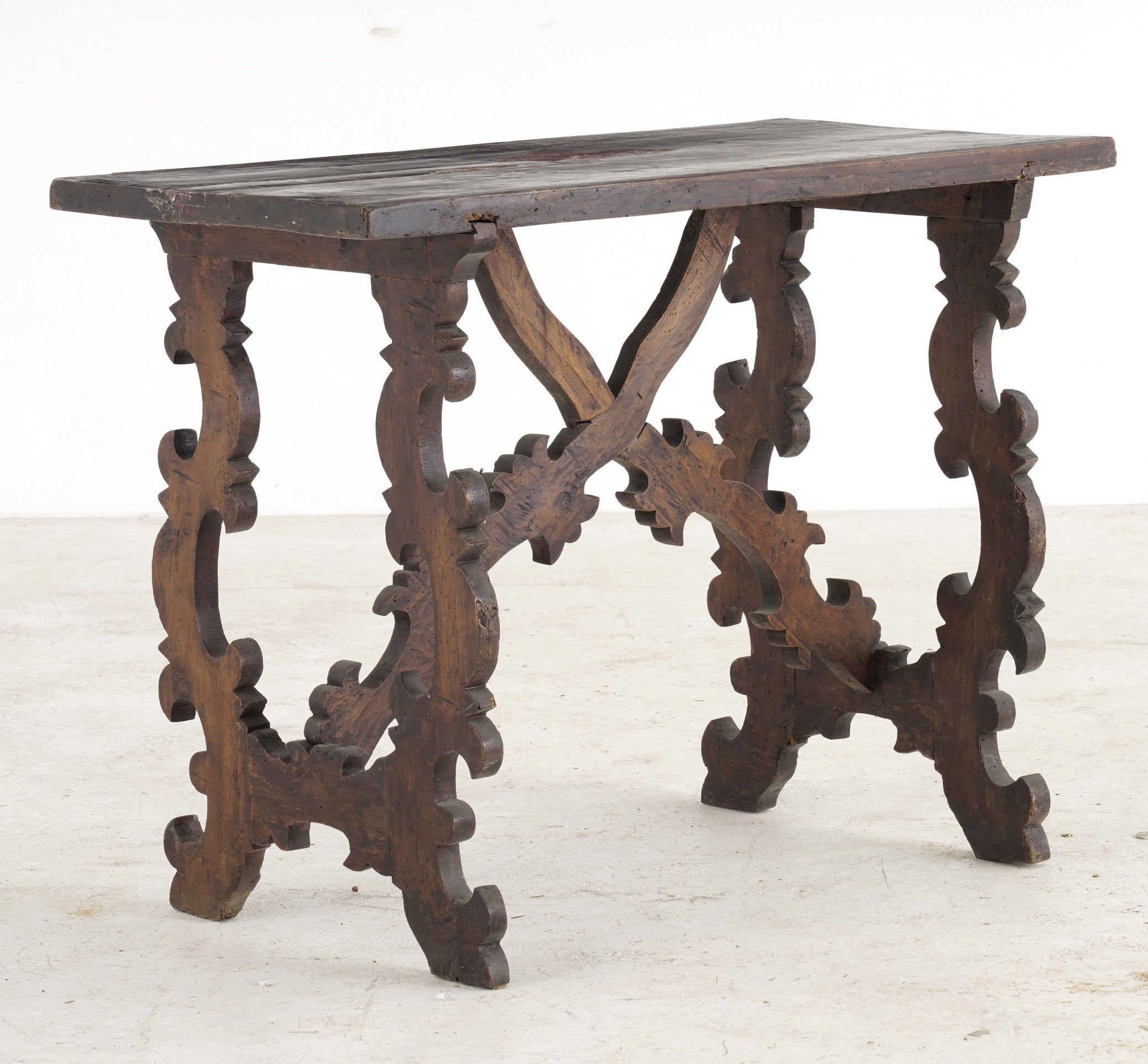 Piccolo tavolo fratino con gambe a lira. XVII-XVIII secolo