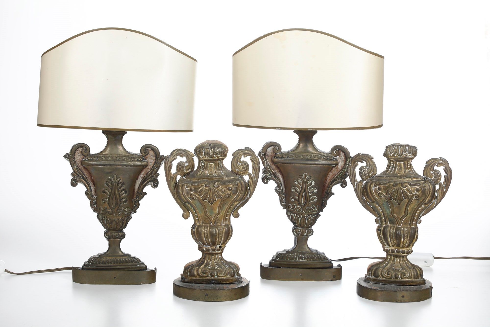 Quattro vasetti portapalme in rame e legno