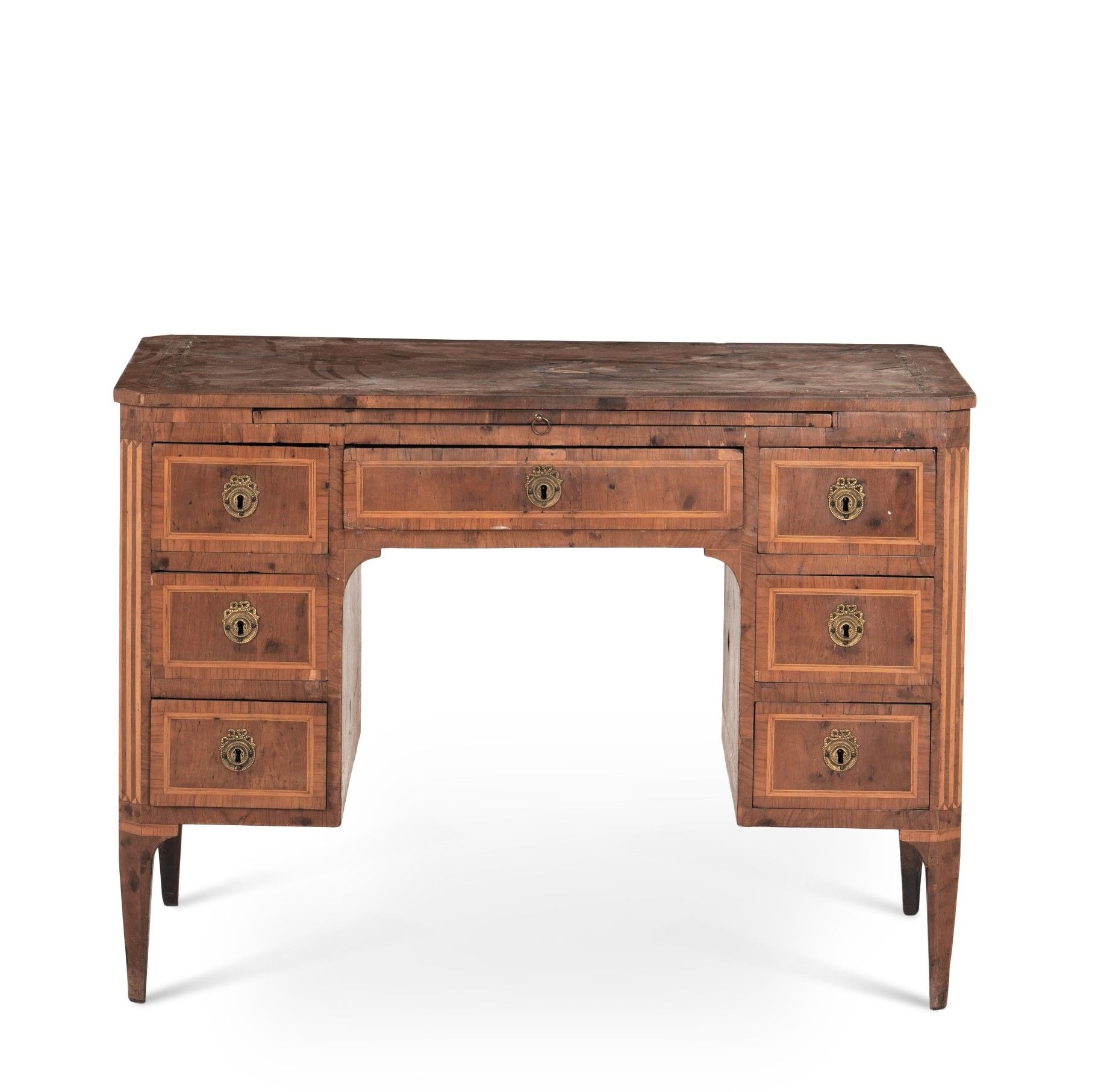 Scrivania da centro lastronata ed intarsiata. Fine XVIII secolo