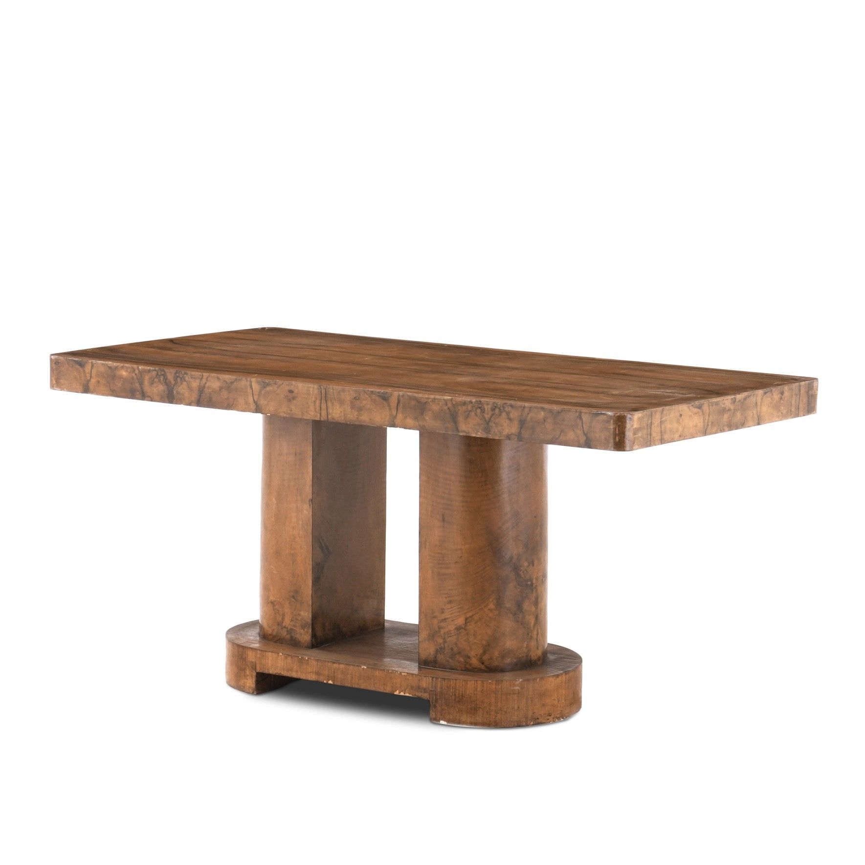 Tavolo rettangolare lastronato in radica. XX secolo