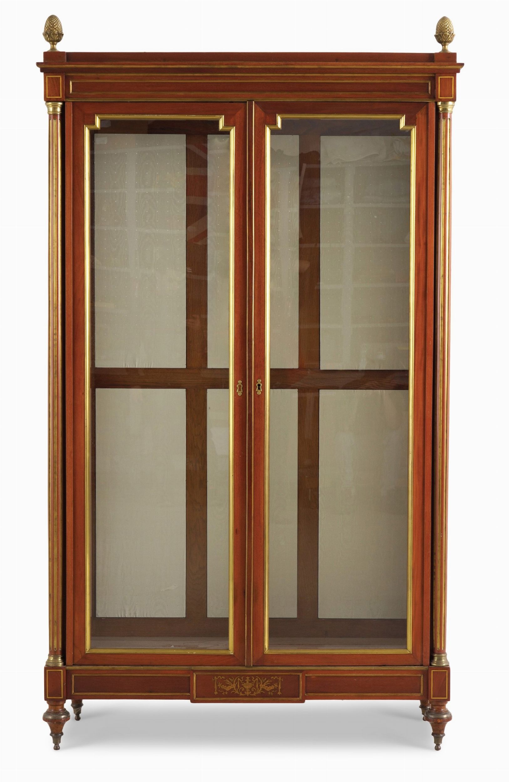 Vetrina in mogano con filetti in ottone dorato e fascia con intarsio centrale, Russia [..]
