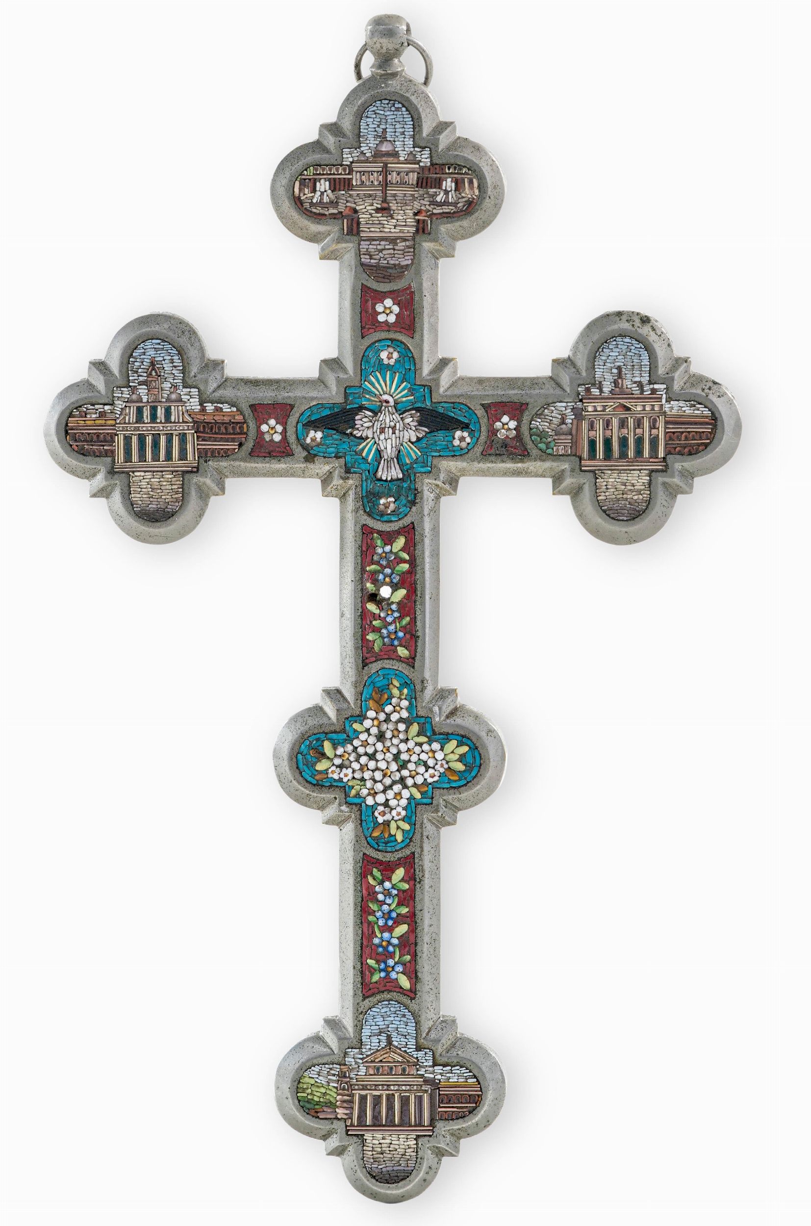 Croce con micromosaici raffiguranti Chiese e munumenti romani. Roma, XIX secolo