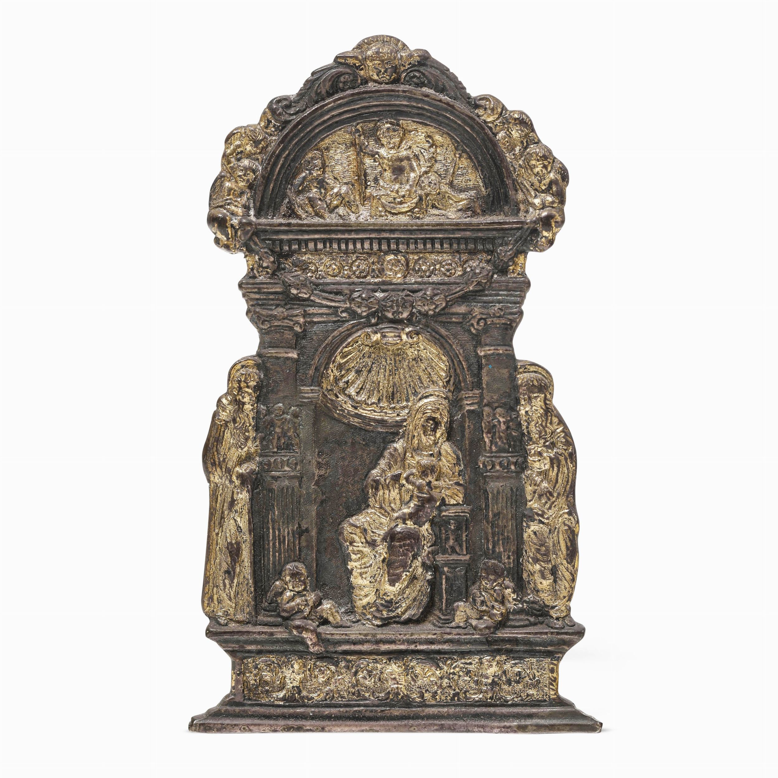 Placchetta architettonica con raffigurazione di Madonna con Bambino e Santi. Arte [..]