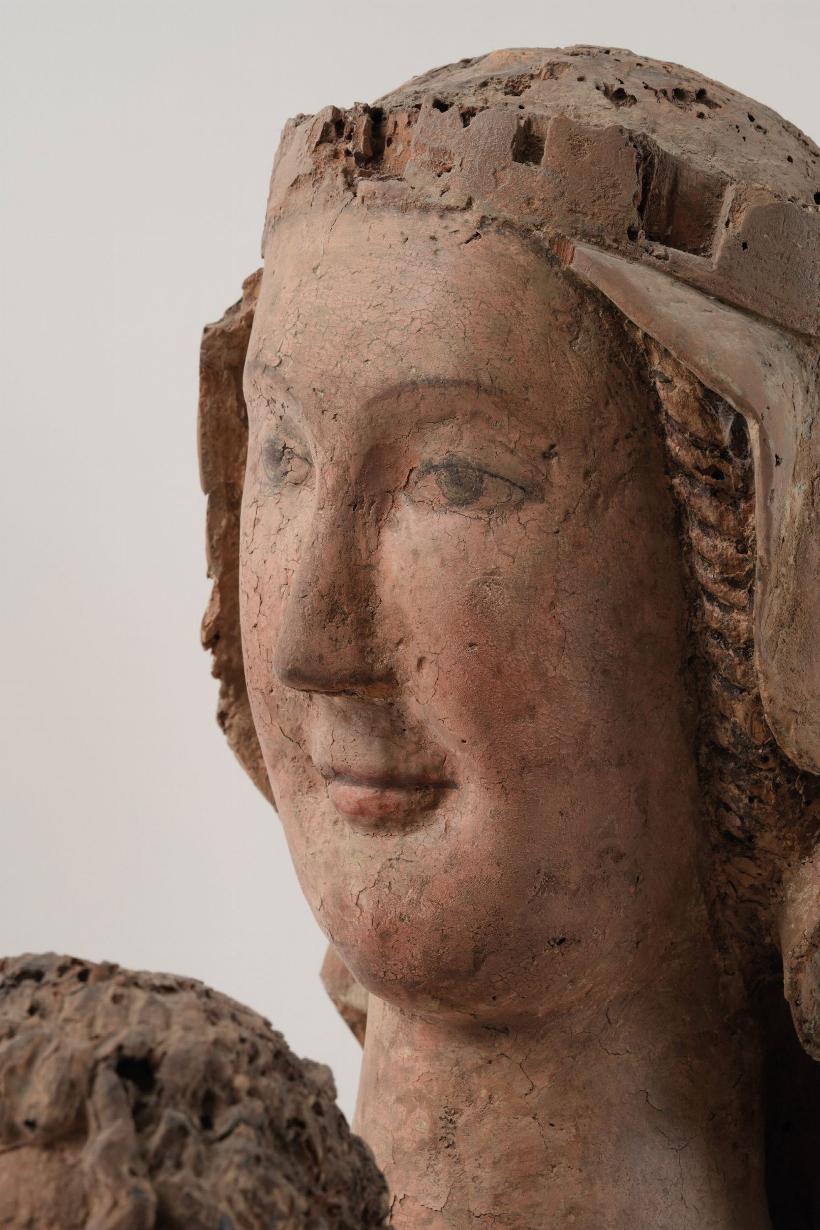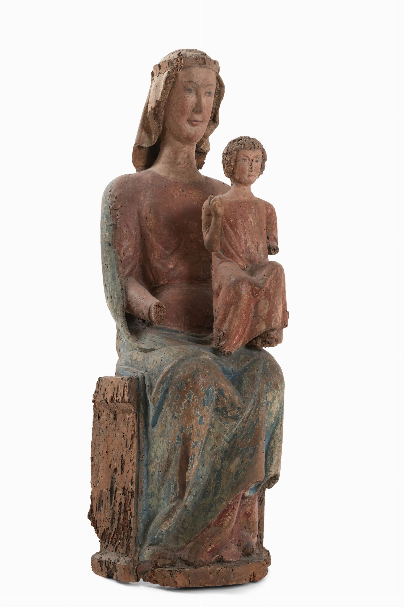 Scuola Umbra Abruzzese del XIV secolo Rara Madonna in trono con Bambino