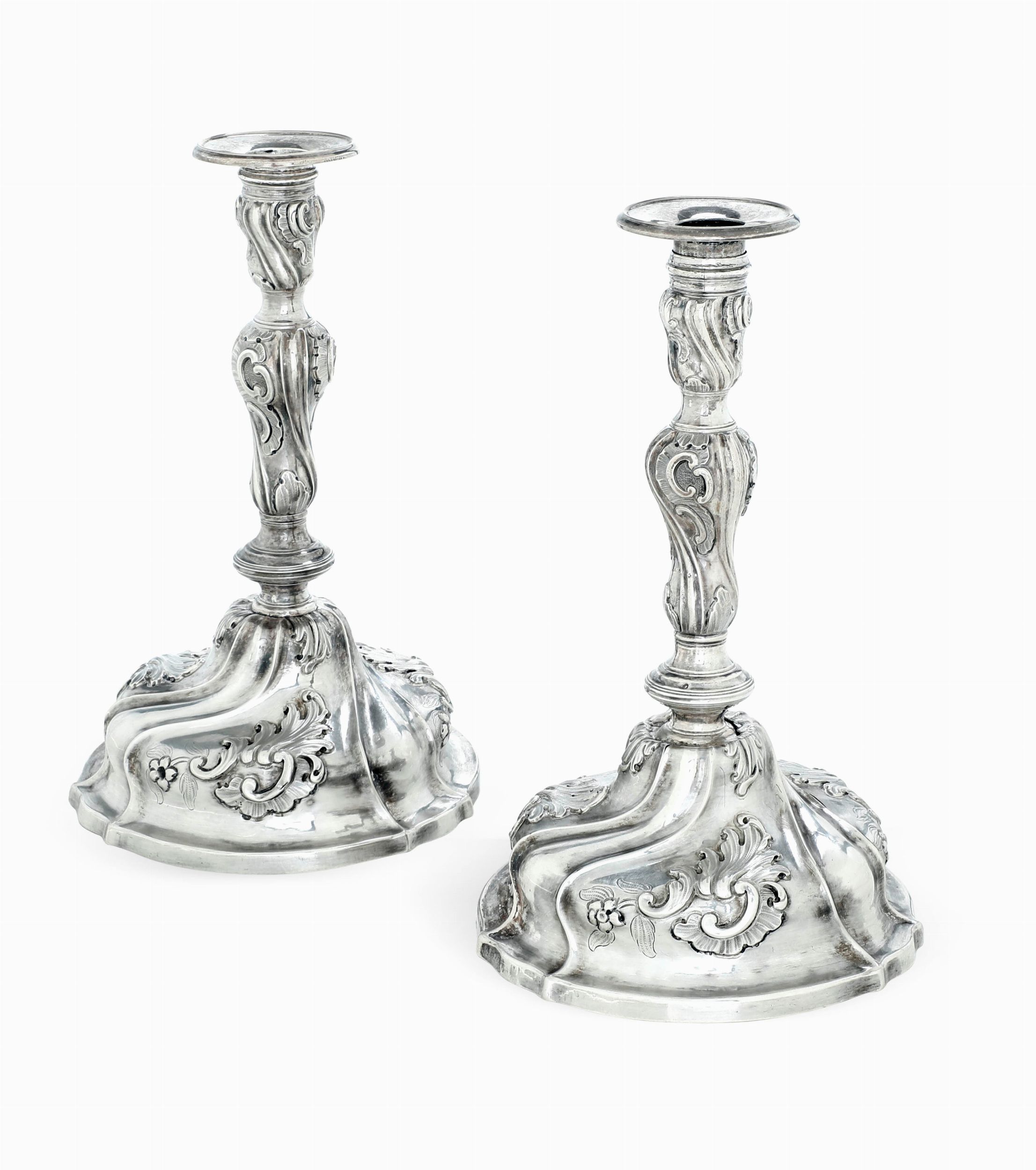 Coppia di candelieri. Genova, marchio della Torretta per l'anno (1)776