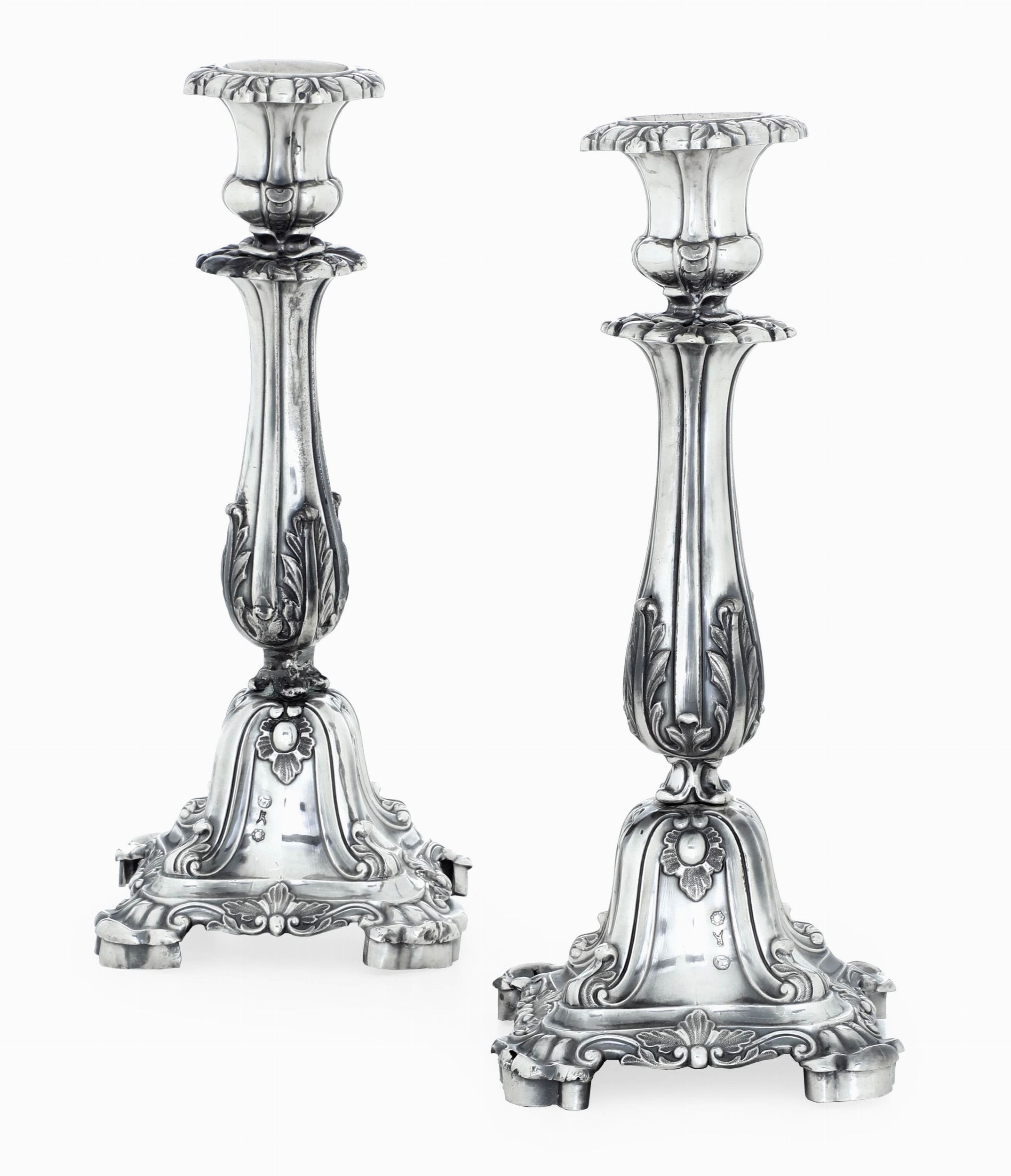 Coppia di candelieri. Milano XIX secolo, argentiere Francesco Ceppi