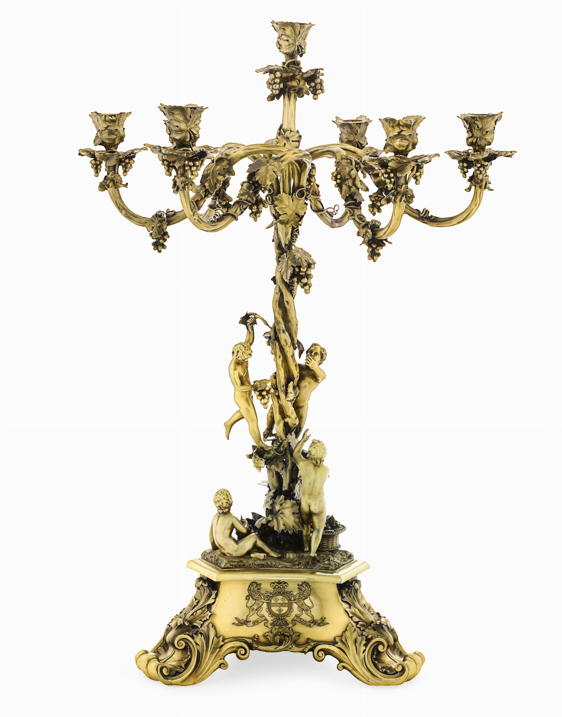 Monumentale candelabro a sei fiamme. Londra 1839, argentiere John Samuel Hunt