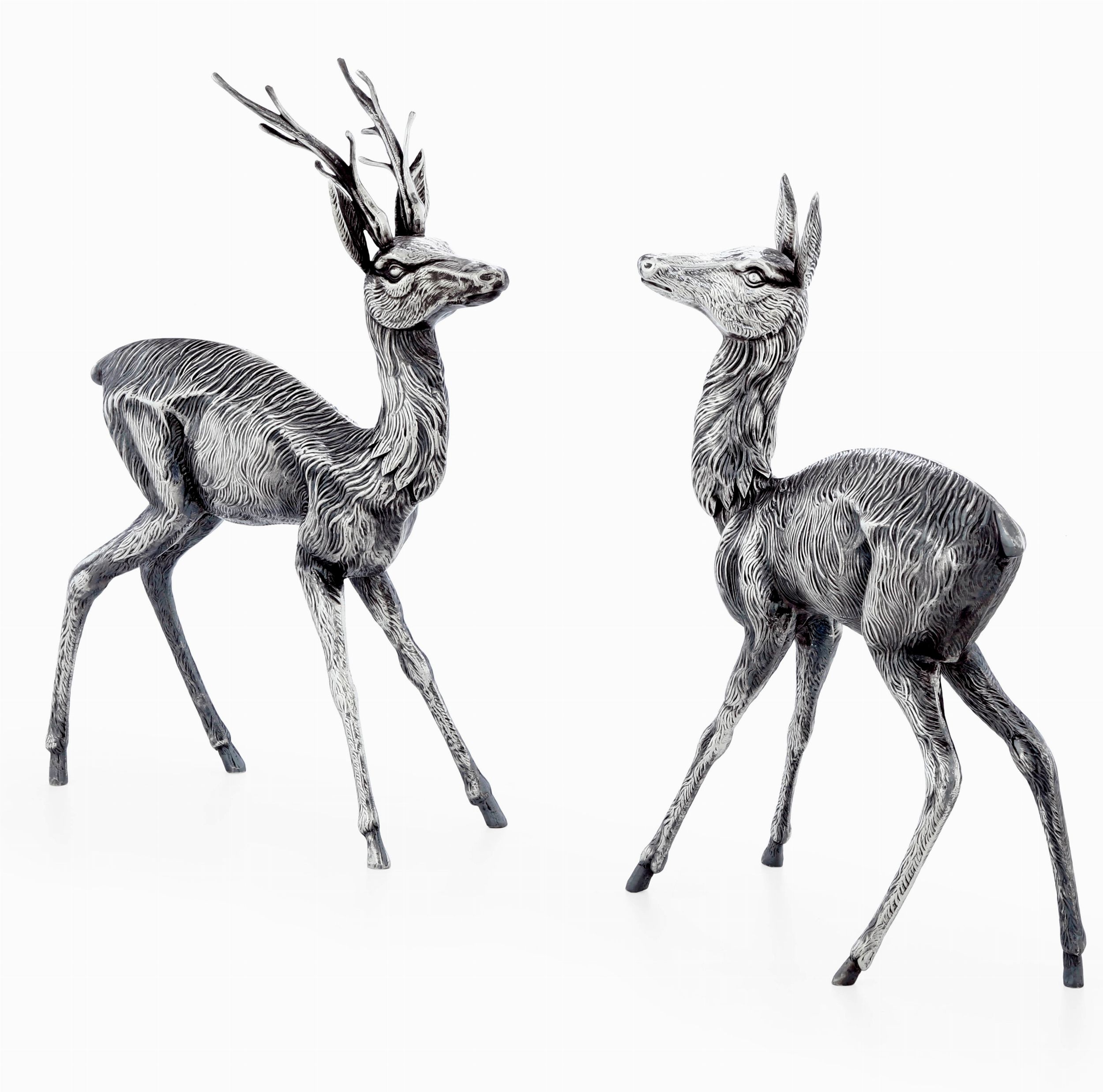 Coppia cervo e cerbiatta. Argenteria artistica italiana del XX secolo. Argentiere [..]