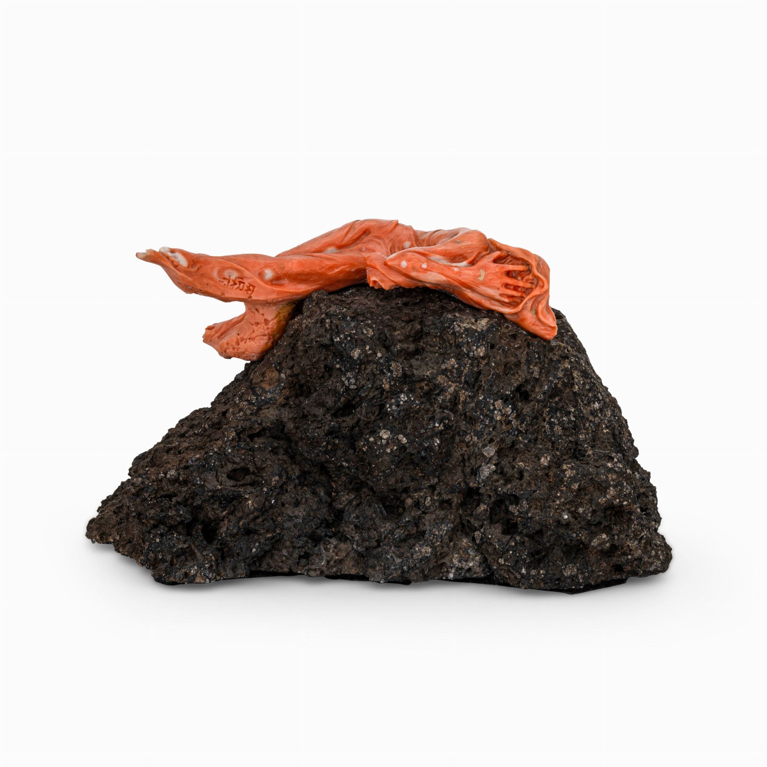 Figura antropomorfa giacente su pietra del Vesuvio, firmata Parlati, Napoli XX-XXI [..]