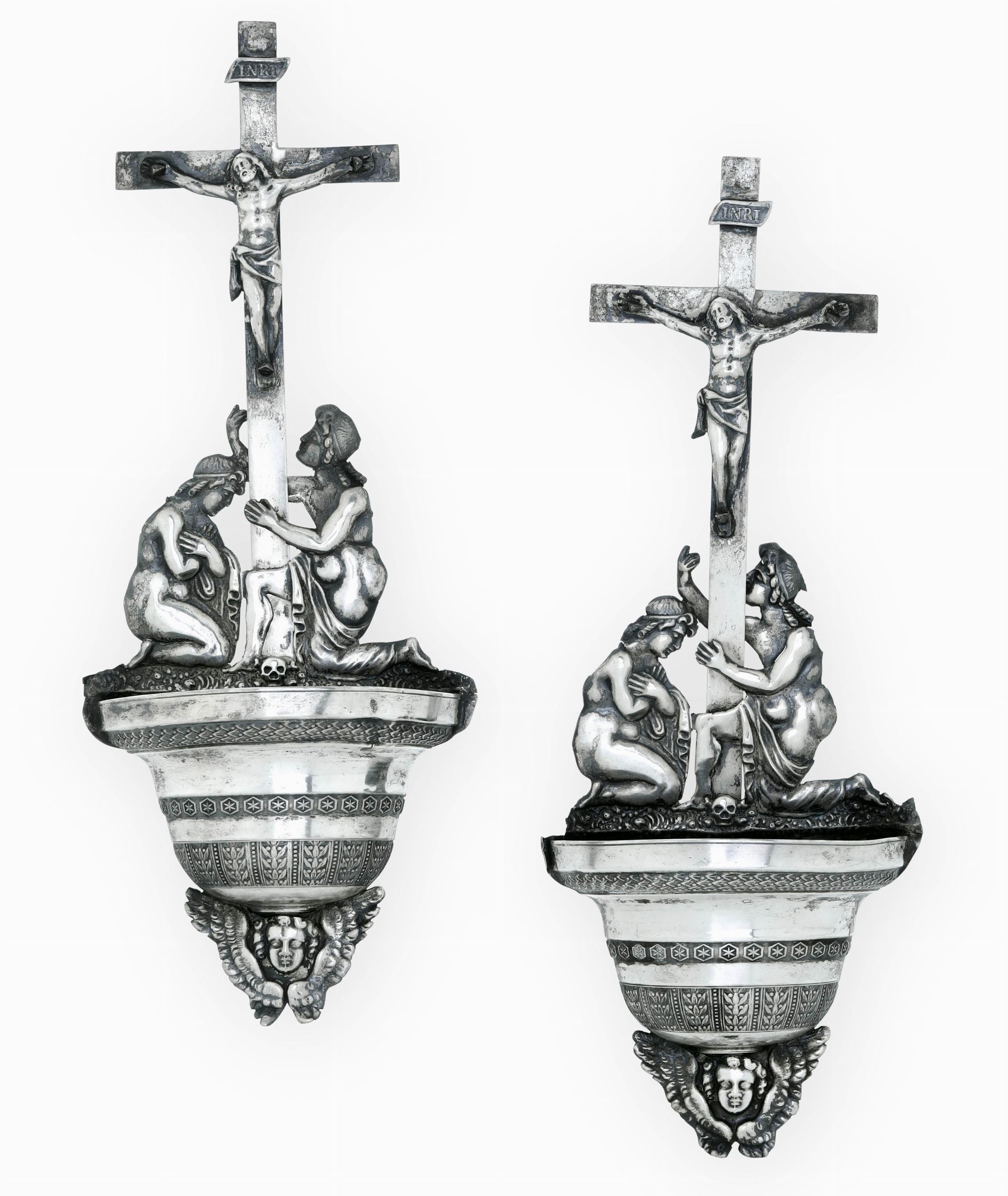 Coppia di acquasantiere. Milano XIX secolo. Marchio dell’argentiere parziale di [..]