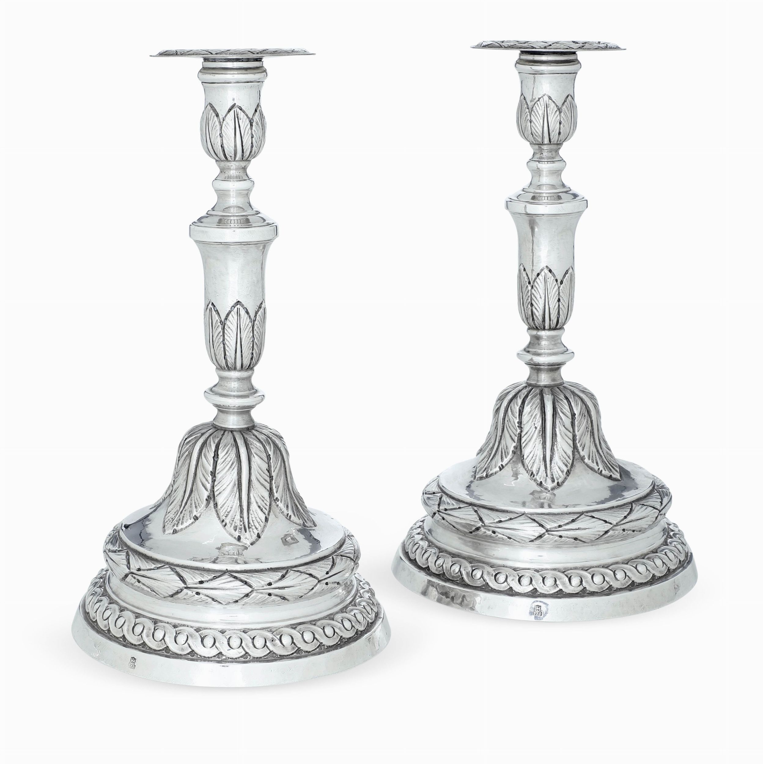 Coppia di candelieri. Genova, marchio della Torretta per l'anno (1)770