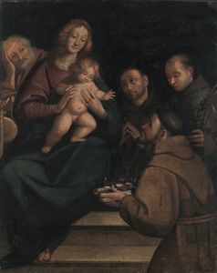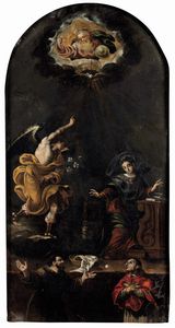 olio su tela applicata su tavola circolare, Largh. 30 cm