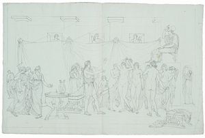 penna, inchiostro bruno e acquerello grigio su carta, Largh. 570 - Alt. 510 mm