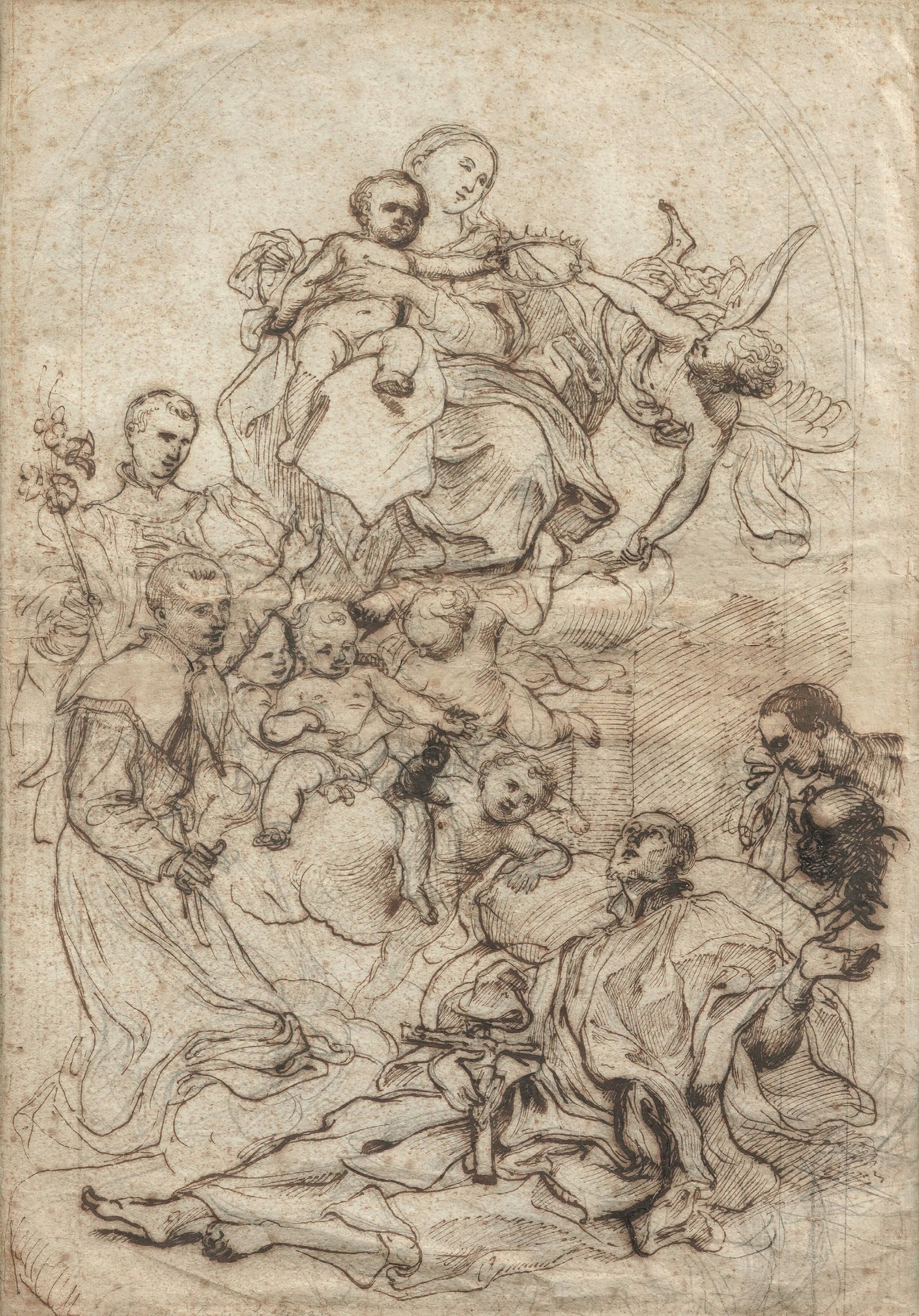 penna, inchiostro bruno, acquerello e tracce di matita nera su carta, Largh. 335 - Alt. 565 mm