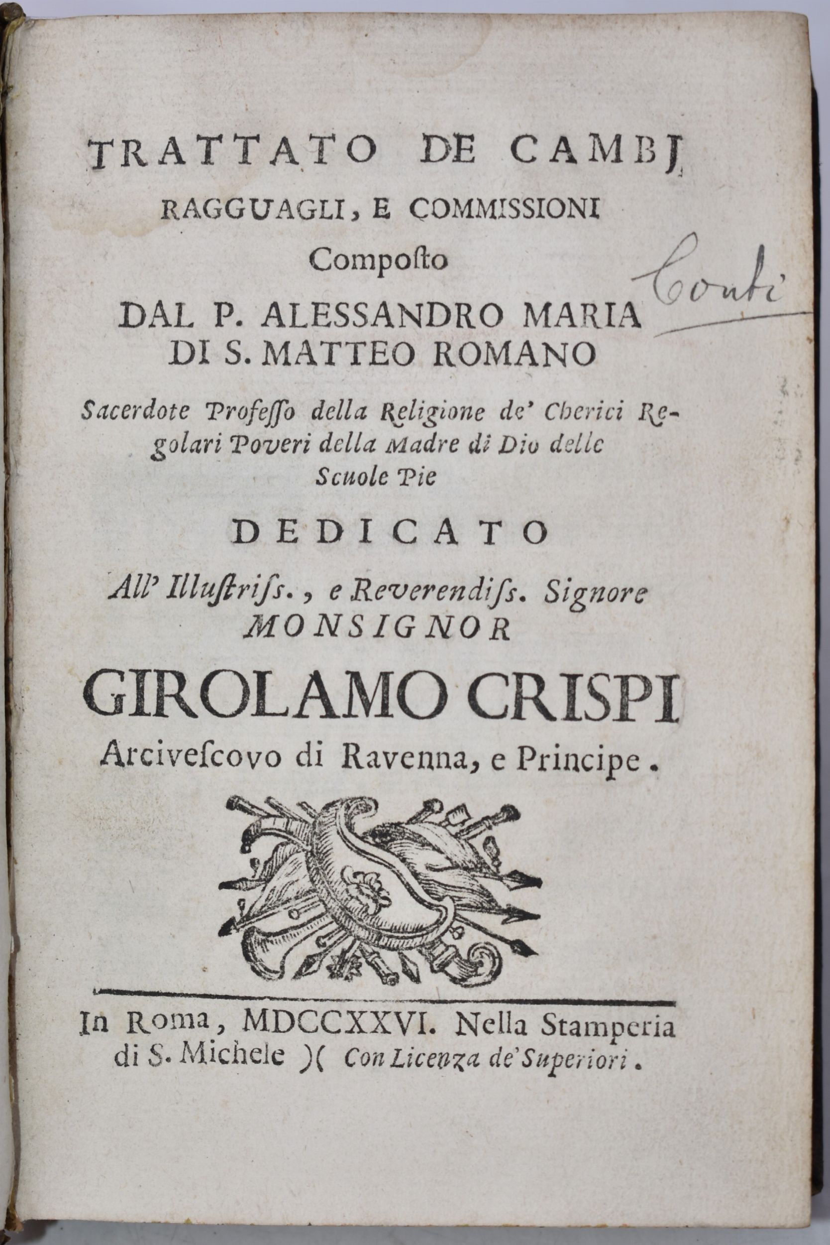 Conti, Alessandro : TRATTATO DE CAMBJ, RAGGUAGLI E COMMISSIONI. COMPOSTO DAL P. [..]