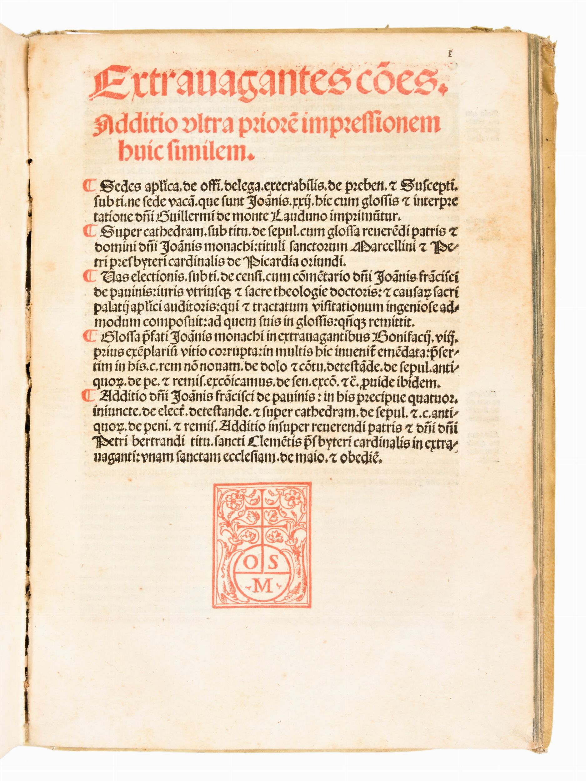5 parti in un volume, con frontespizi conservati, stampati in rosso e nero. In-8°, mm. 225x160, carte 276, 112, 64, 64, 11. Testo completo, manca l'ultima carta bianca TTT12. Rilegatura post. (XVII o XVIII sec.) in piena pergamena antica con 5 nervature e titoli manoscritti al dorso. Tagli delle carte in blu. Piccoli fori di tarlo al dorso. Restauro con mancanze al primo frontespizio. Carte pulite, testo nitido (stampato in rosso e nero), con rare fioriture e minimi difetti alle carte. Leggera gora al margine inf. delle prime 12 carte. Minuscoli lavori di tarlo marginali. Alcune figure in xilografia nel testo. Capilettera xilografici. Cinquecentina impressa in Venezia il 1525 (data al verso della c. 275) per gli eredi di Ottaviano Scoto.