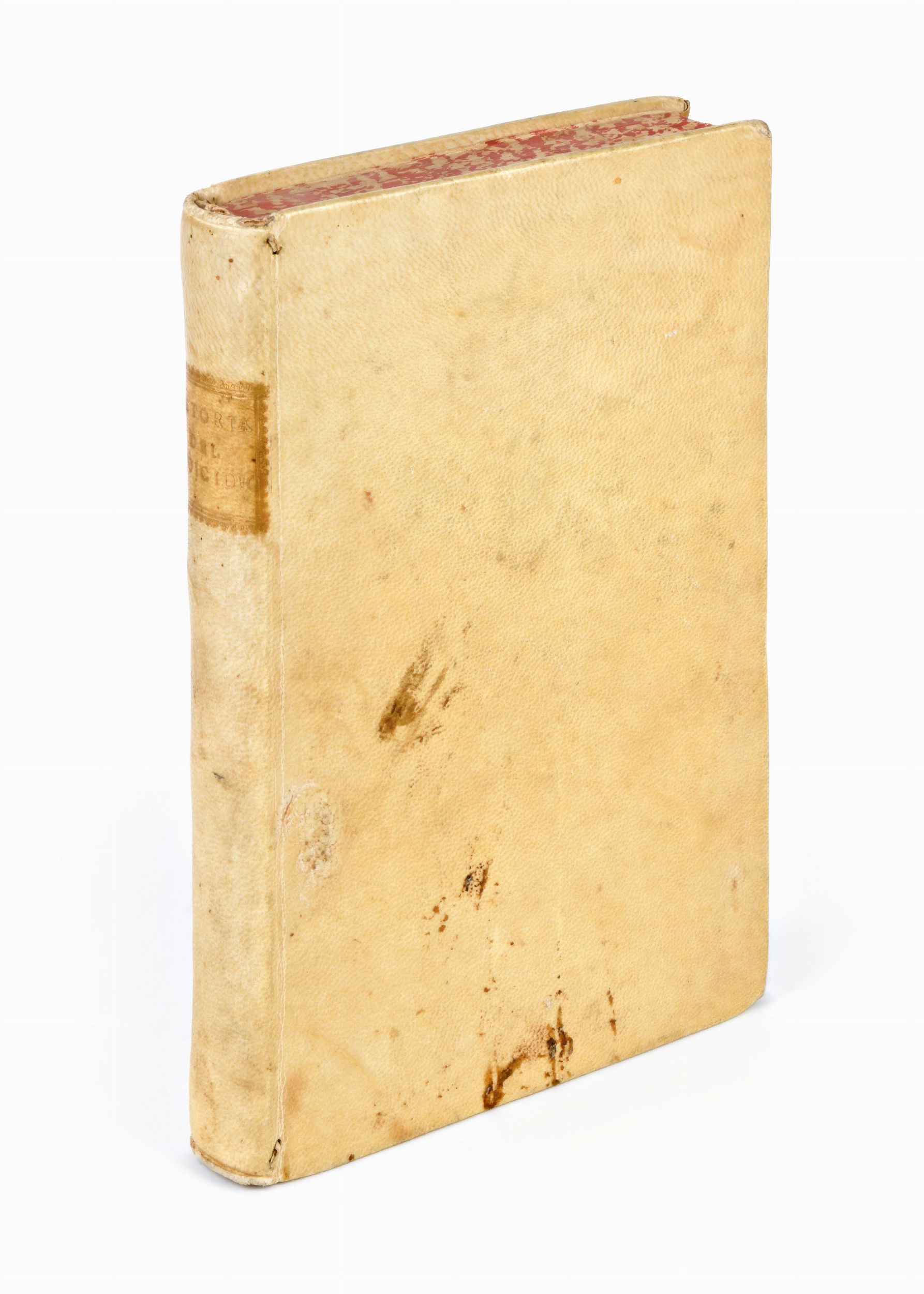 Formato in-8°, mm. 205x135, pp. (4), 289, (1). Completo. Elegante rilegatura coeva in piena pergamena con titoli in oro al dorso. Tagli a spruzzo. Buon esemplare, con lievi fioriture alle carte. Presente ritaglio all'angolo della carta di guardia anteriore. Agatopisto Cromaziano è lo pseudonimo di Appiano Buonafede. Cfr. Melzi, I, p. 22