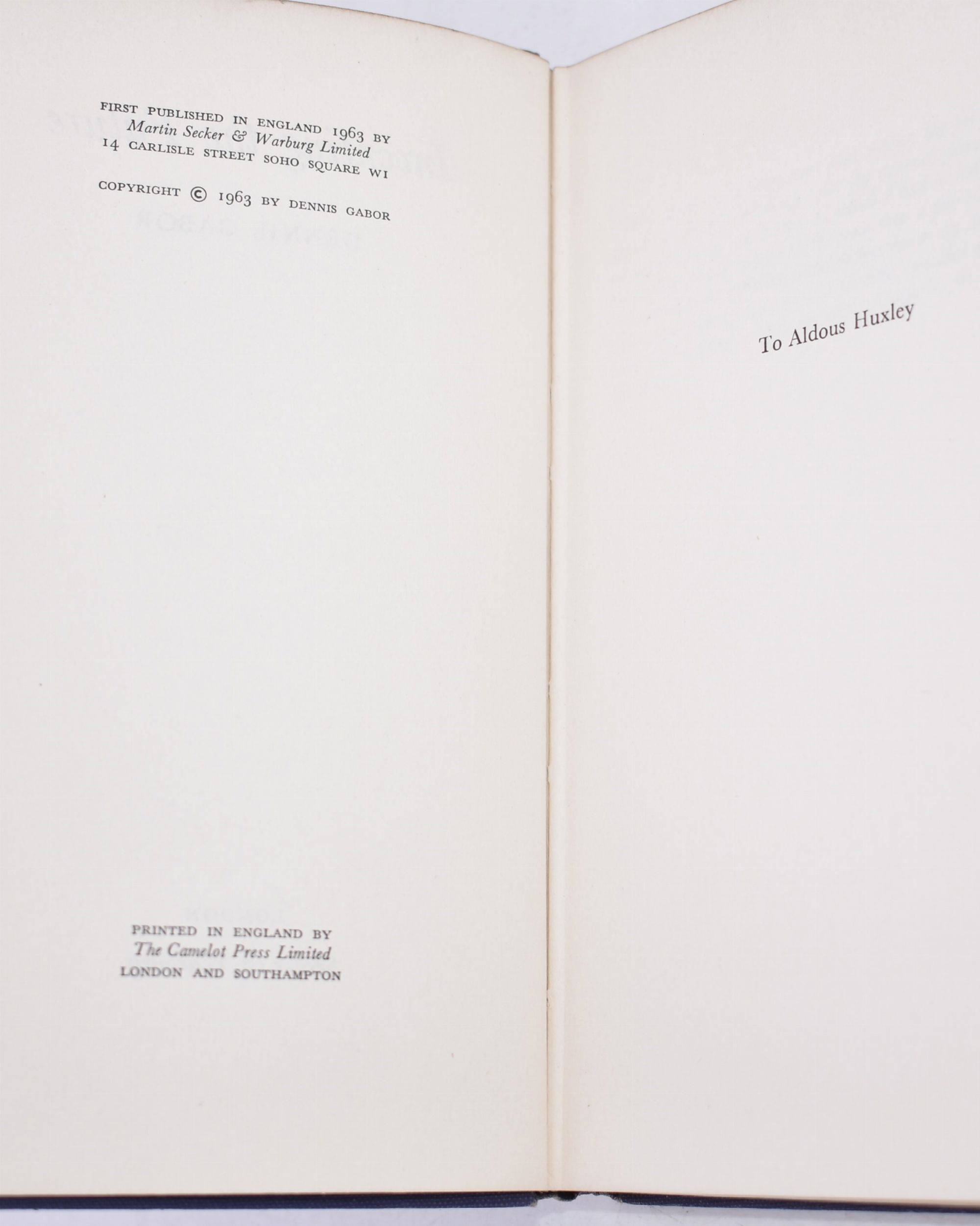 Gabor, Dennis: INVENTING THE FUTURE. London, 1963, Secker & Warburg.
