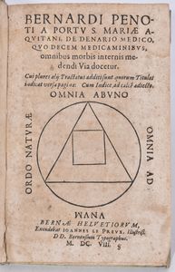 1 vol., in 8°, cm 16,5x11,5, p. [2], 203, [3]. Rilegatura coeva in piena pergamena. Opera dell'alchimista francese [..]