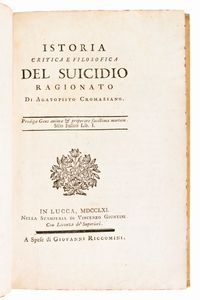 [Filosofia/Morale] Buonafede, Appiano : Istoria critica e filosofica del suicidio [..]