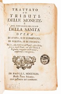 Formato in-4°, (28), 793, (3), 59, 168. Completo. Elegante rilegatura coeva in piena pelle con 5 nervature, titoli [..]