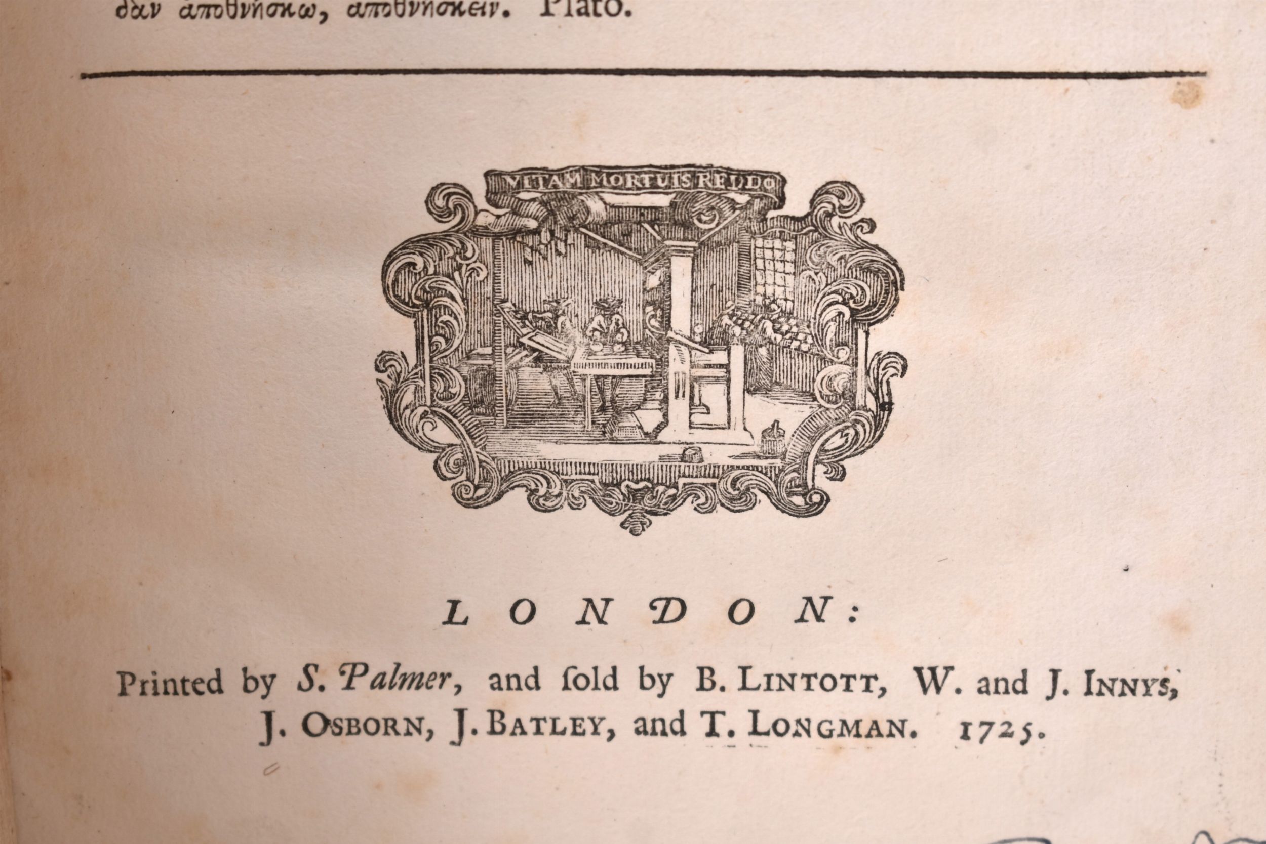Edizione succ. (la prima del 1722) del libro famoso in tutto il mondo per aver ispirato il giovanissimo tipografo e futuro padre fondatore degli U.S.A. Benjamin Franklin (1706-1790) a comporre una delle sue prime opere, l'introvabile Dissertation on Liberty. Buon esemplare, con ex libris araldico di Beilby Thompson of Escrick.