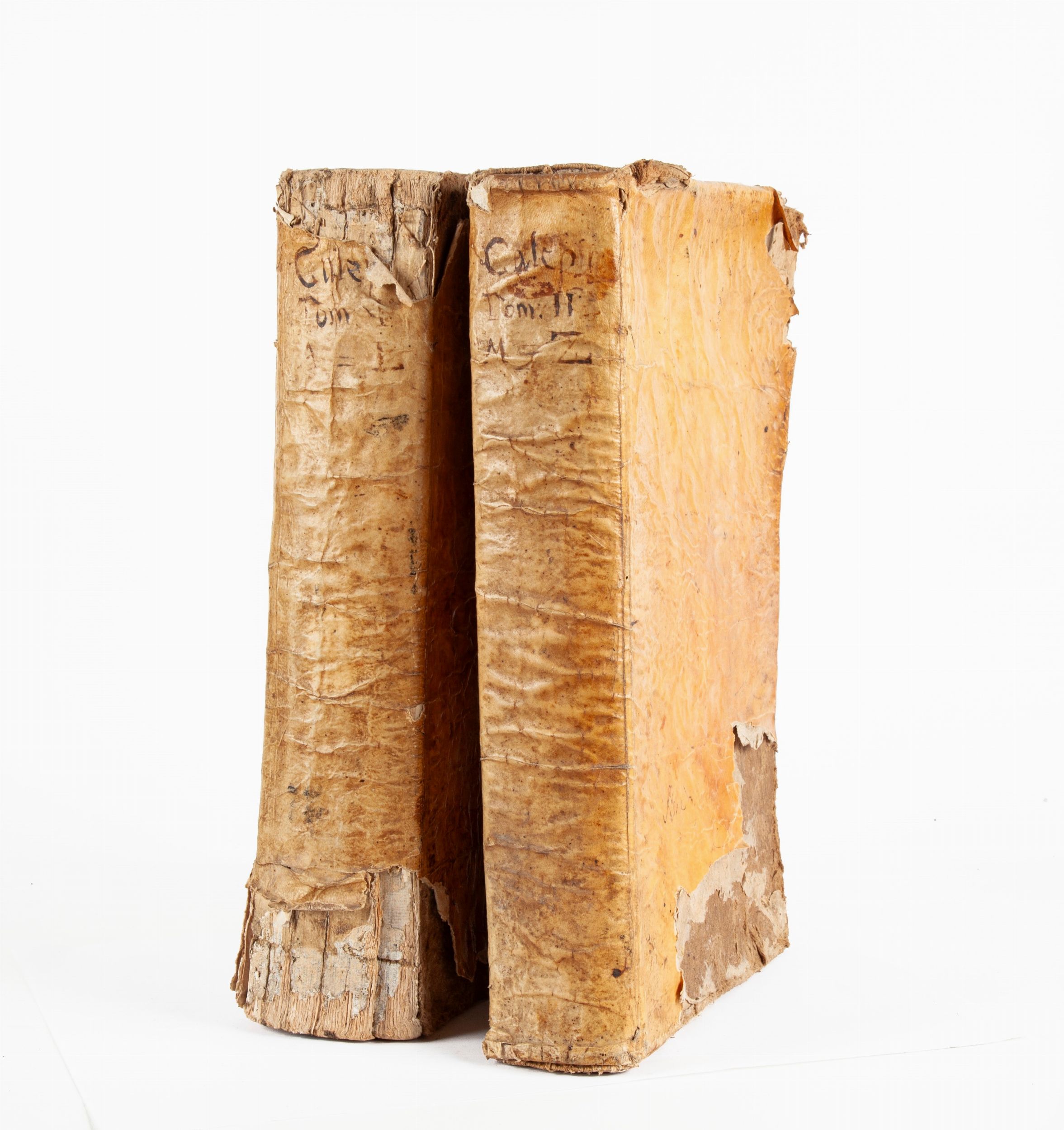 cm 39x25,5 Anissoniorum & Ioannis Posuel, Lione 1681 In Folio. 2 Volumi. Edizione lionese cinquecentesca della monumentale opera di natura lessicografica ed enciclopedica sulla lingua latina del celebre umanista e latinista bergamasco. Legatura coeva in piena pergamena con titoli manoscritti ai dorsi (difetti e mancanze alla pergamena). Restauro al frontespizio del primo volume. Arrossature e gore ad ambedue i volumi. Note manoscritte. Lotto non passibile di restituzione.