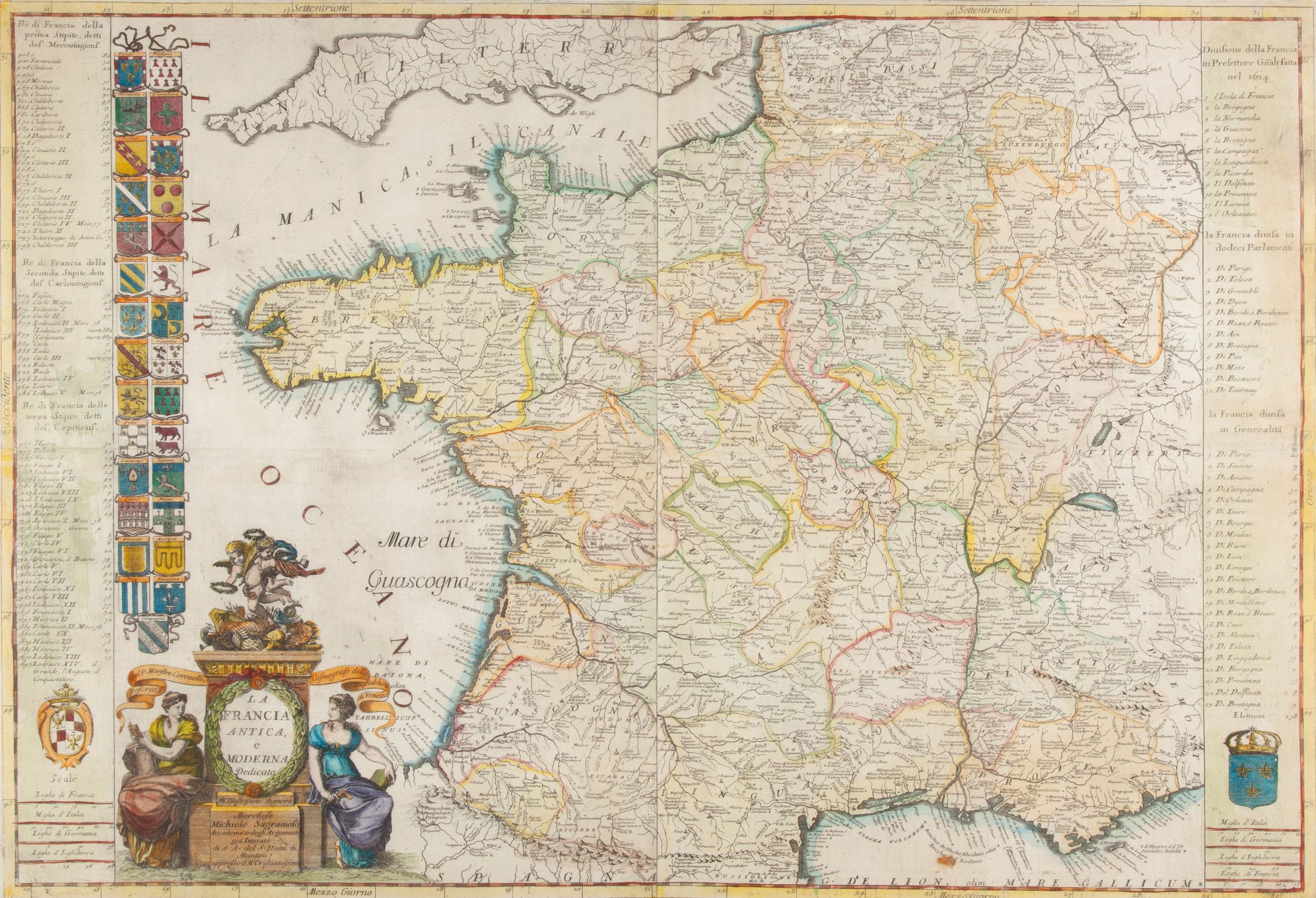 Coronelli, La Francia antica e moderna, Carta acquerellata