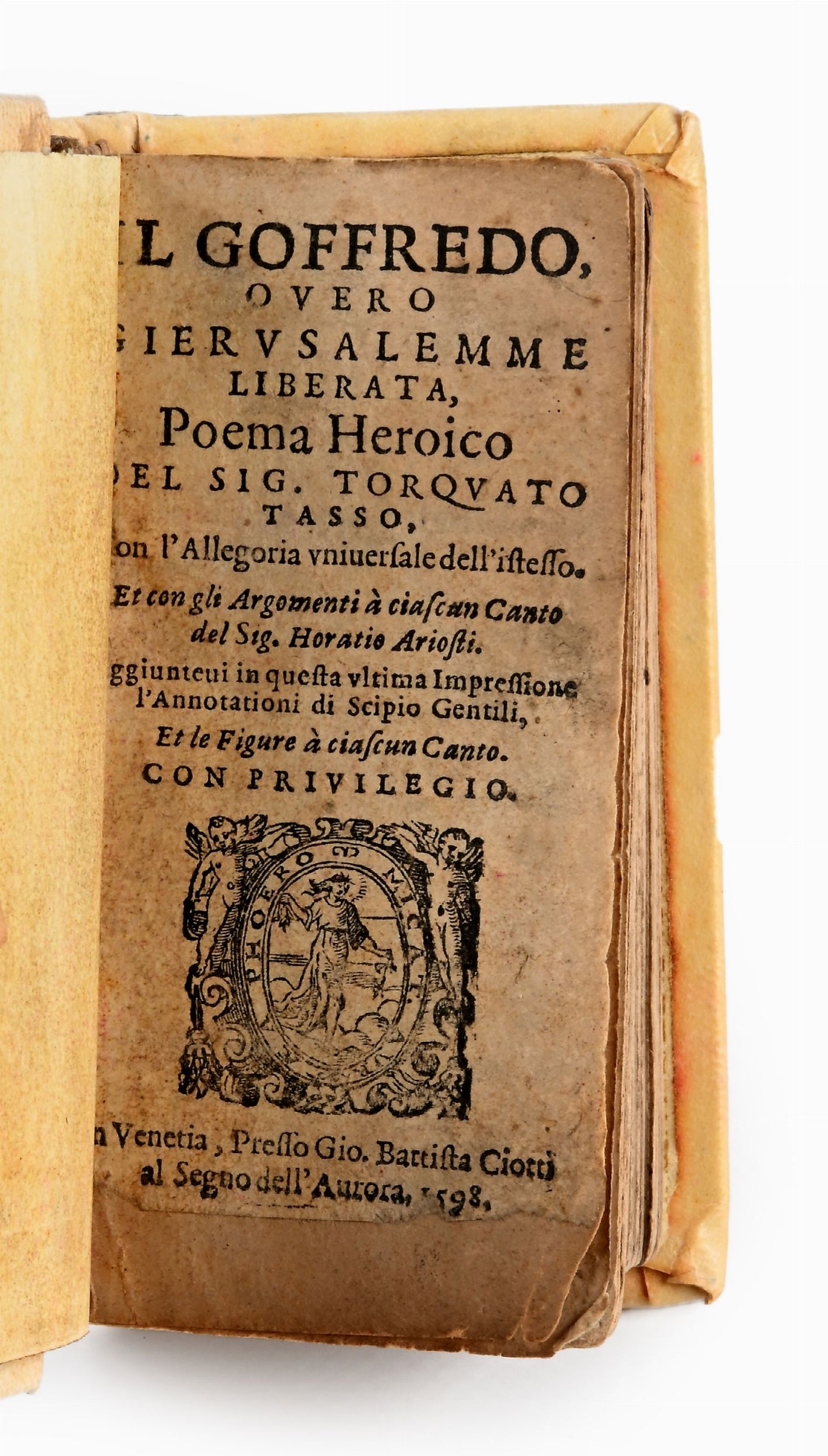 Venezia Ciotti 1598 Legatura in piena pergamena non coeva. Esemplare rifilato, piccola mancanza al margine inferiore del frontespizio.