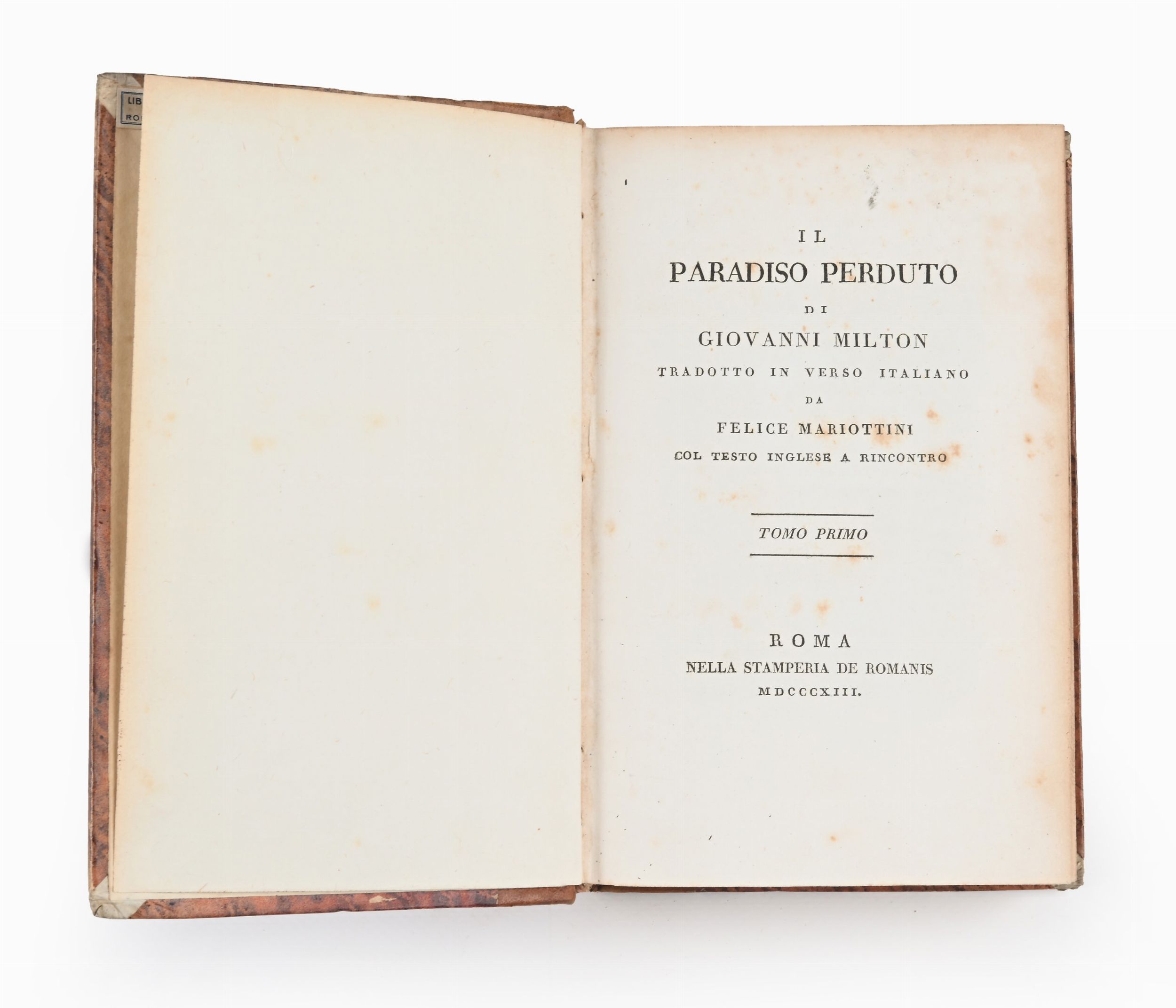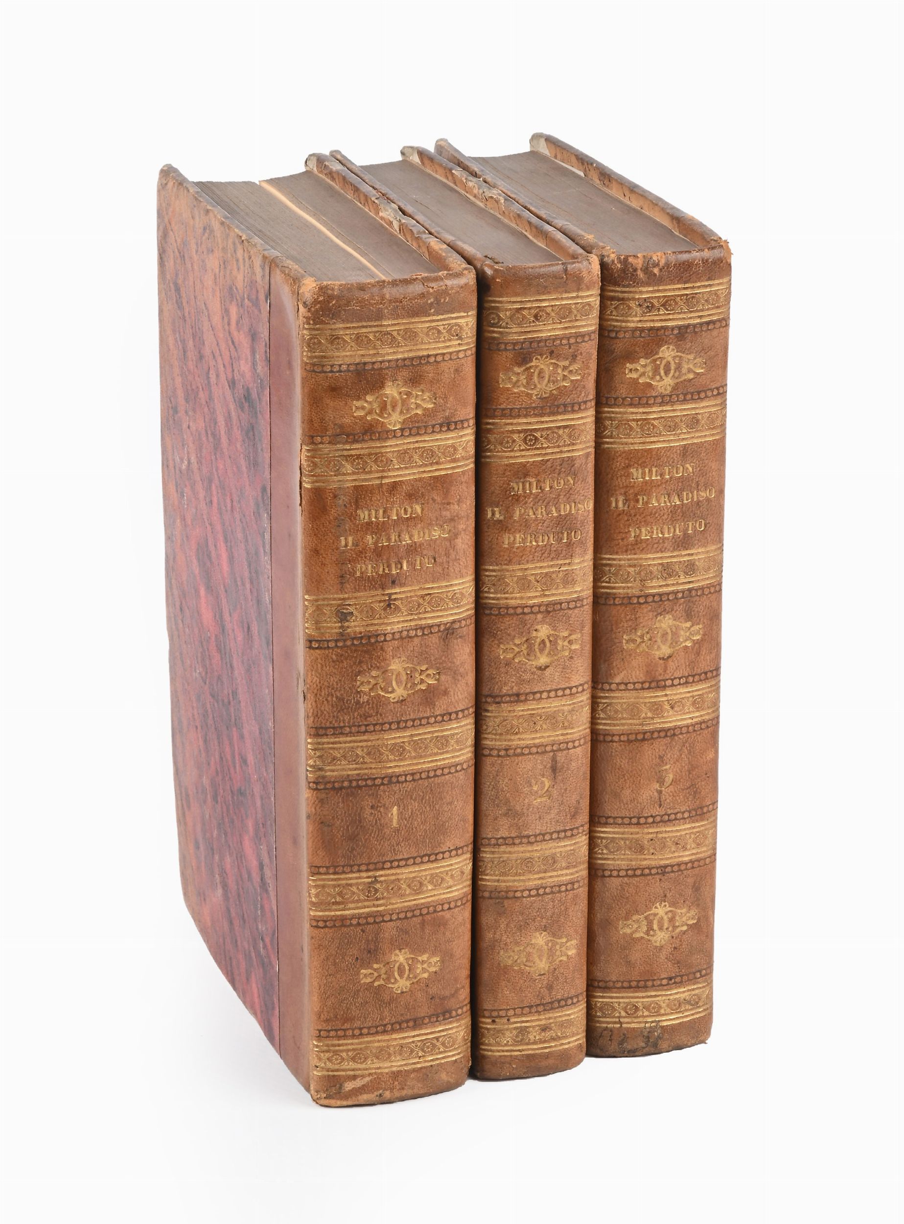Stamperia de Romanis, Roma 1813-14 3 volumi in ottavo. Bella legatura coeva in mezza pelle con titoli in oro al dorso. Leggere fioriture ma copia molto fresca.