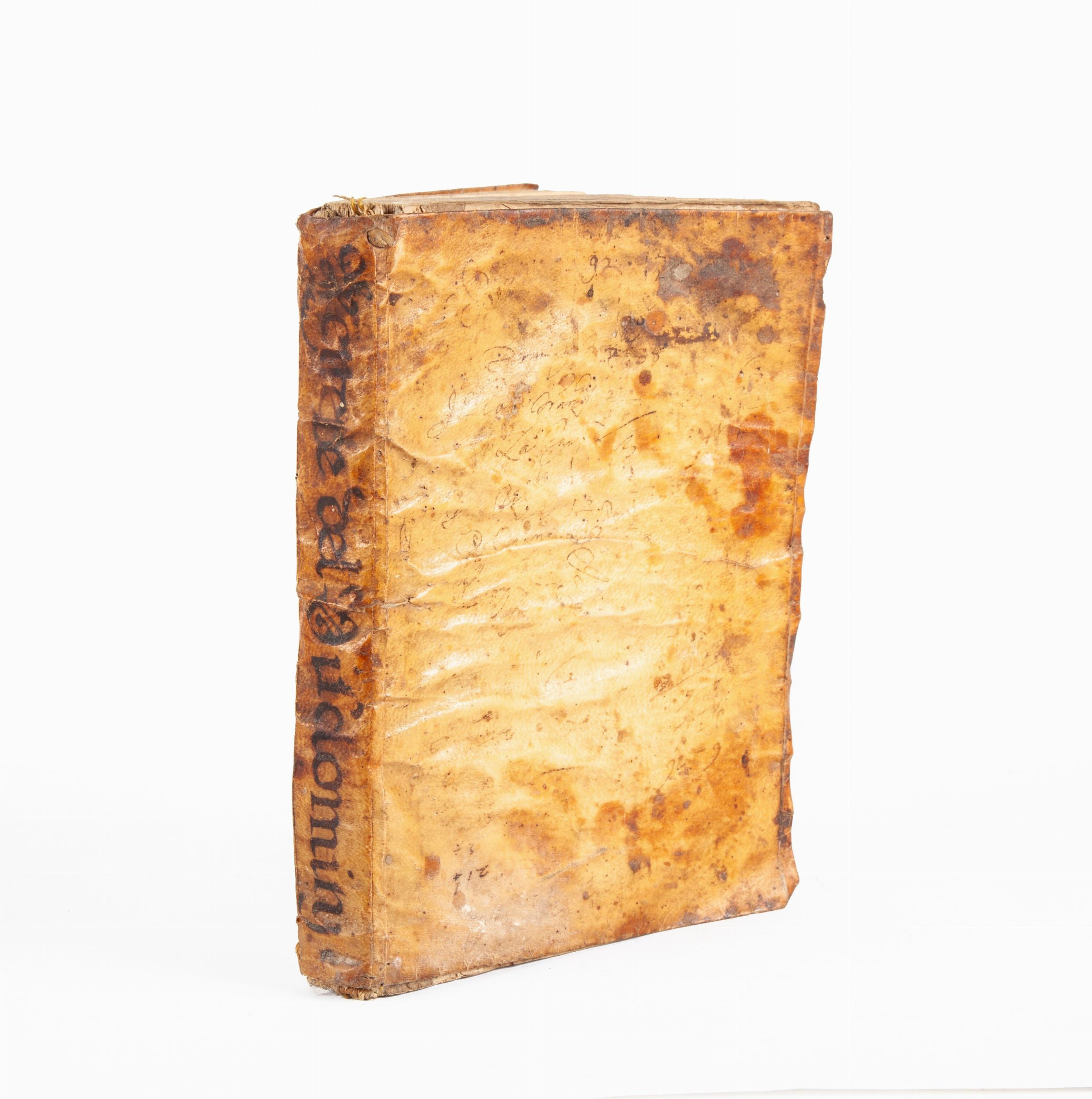 cm 22x17 Alessandro De' Vecchi, Venezia 1630 In 8°. Opera in due parti, ciascuna con proprio frontespizio con numerazione continuata. Edizione successiva alla prima (1623) del corpus delle lettere scritte a cardinali e a nobili dall'erudito francescano ferrarese del XVI secolo (1516-1573). Legatura in piena pergamena floscia coeva, slegata con titolo manoscritto al dorso. Marginali tracce di tarlo che non ledono il testo, gore d'umidità nel margine inferiore interno.