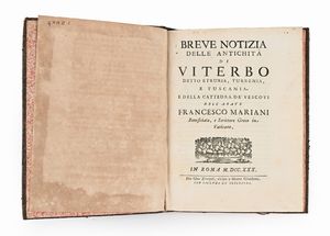 cm 17,5x11,5 Antonio Chracas, Roma 1698 In 8° Legature coeve in pena pelle con decori e titoli in oro ai dors [..]
