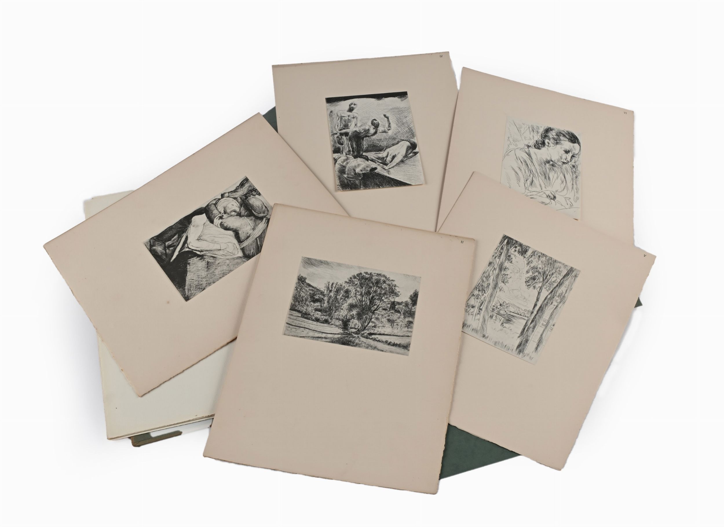 34x26 cm Dumoulin, Parigi 1937 Senza numerazione ma tiratura in 100 esemplari. Incompleto, presenti 2 acqueforti su 3. Rotture e mancanze alla cartella. Carte in buone condizioni.