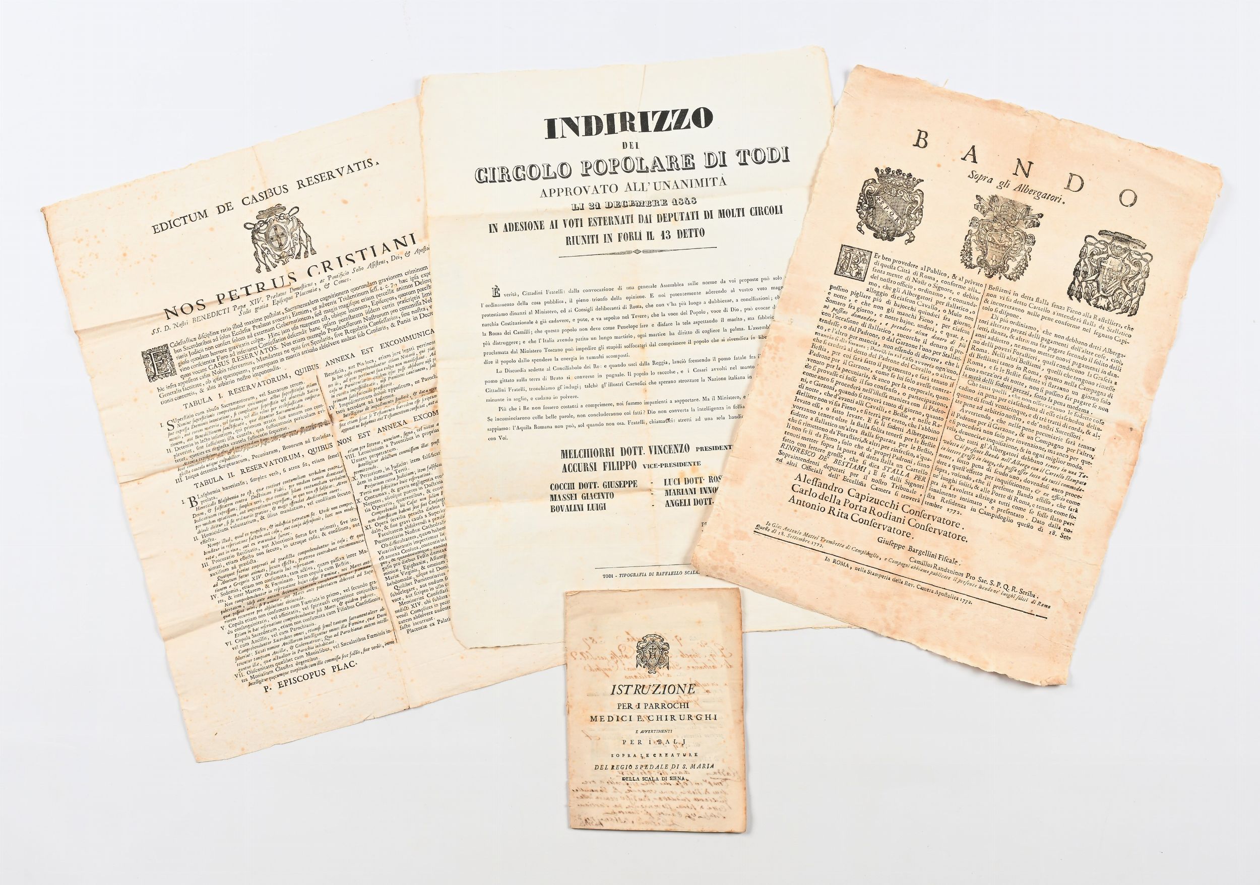 Lotto composto da 3 bandi ed editti ed un'istruzione del XVIII e XIX secolo dello [..]