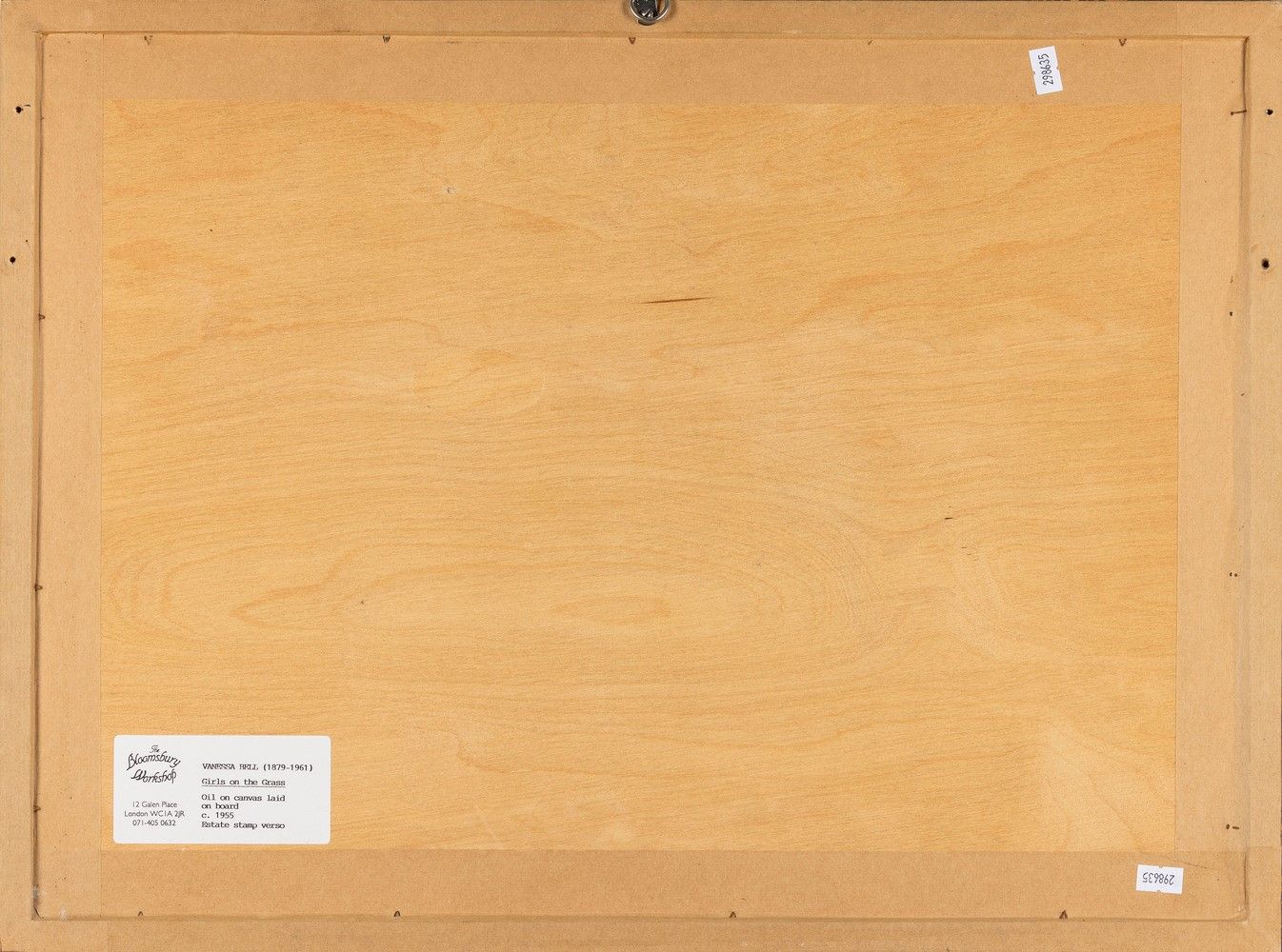1955 Etichetta al retro della The Bloomsbury Workshop, Londra