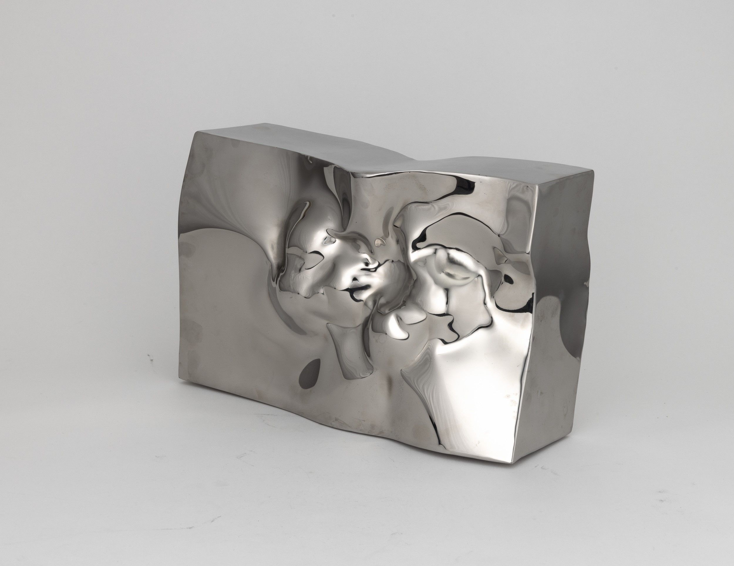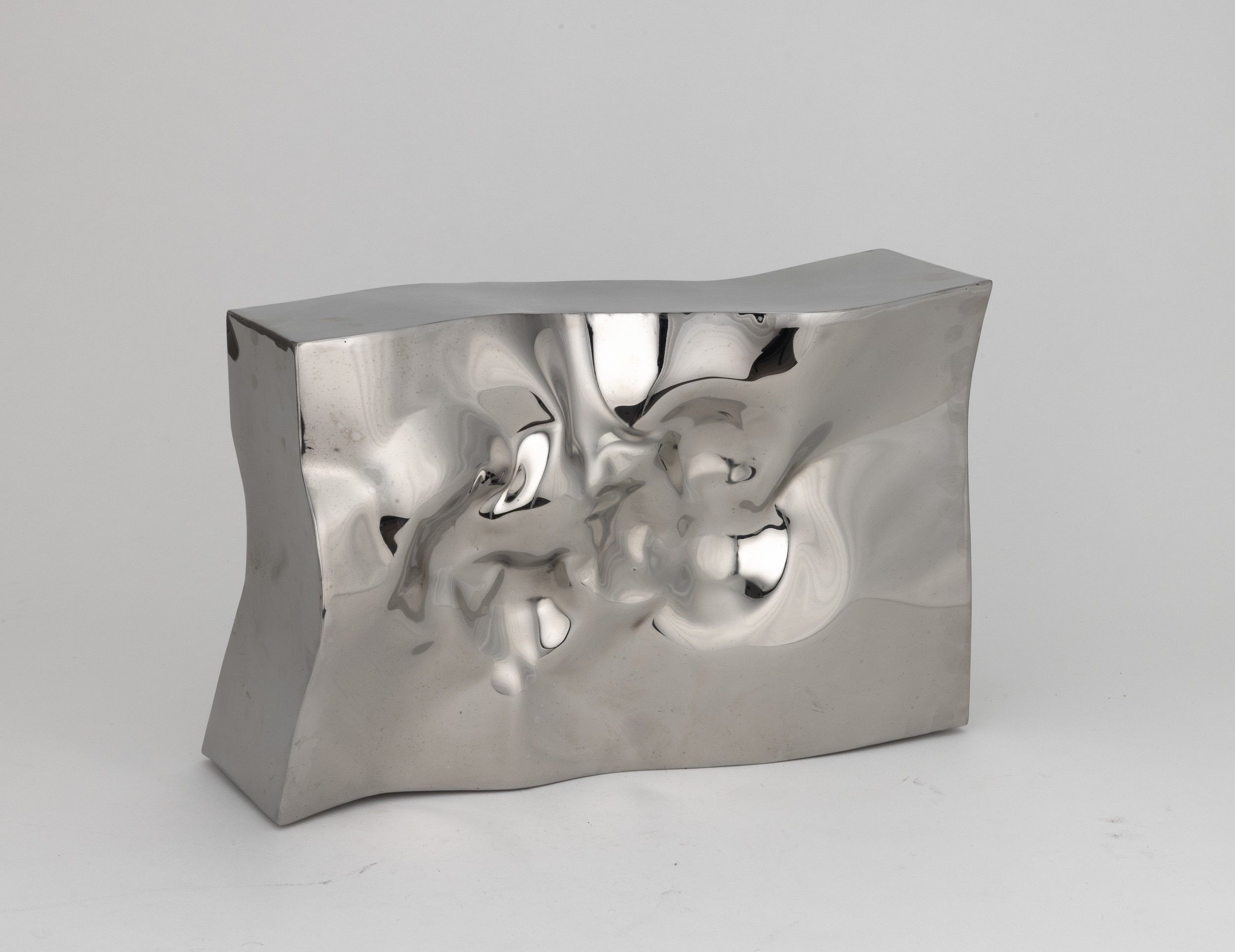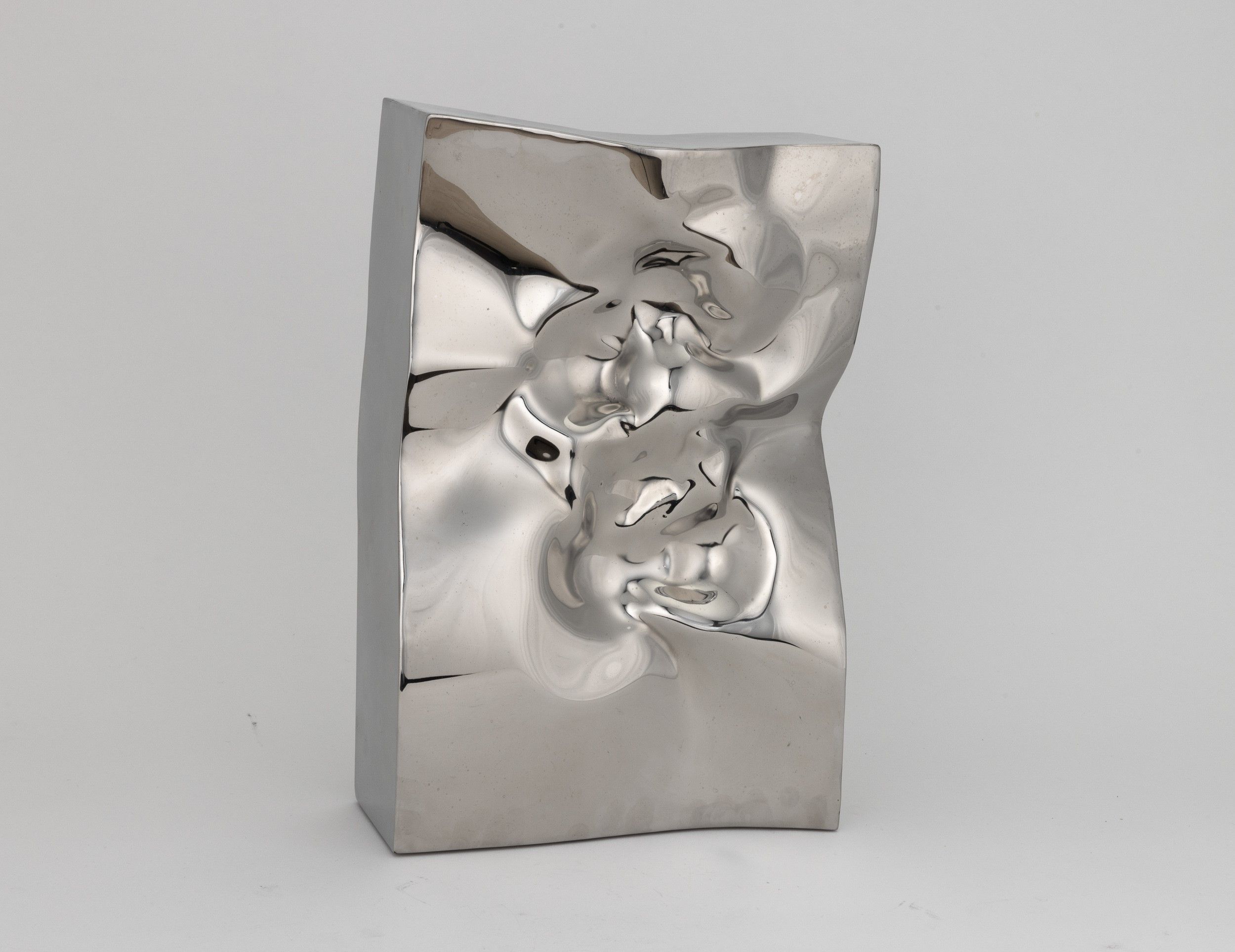 scultura in acciaio inox lucidato a specchio, Largh. 47 - Prof. 10 - Alt. 27 Cm
