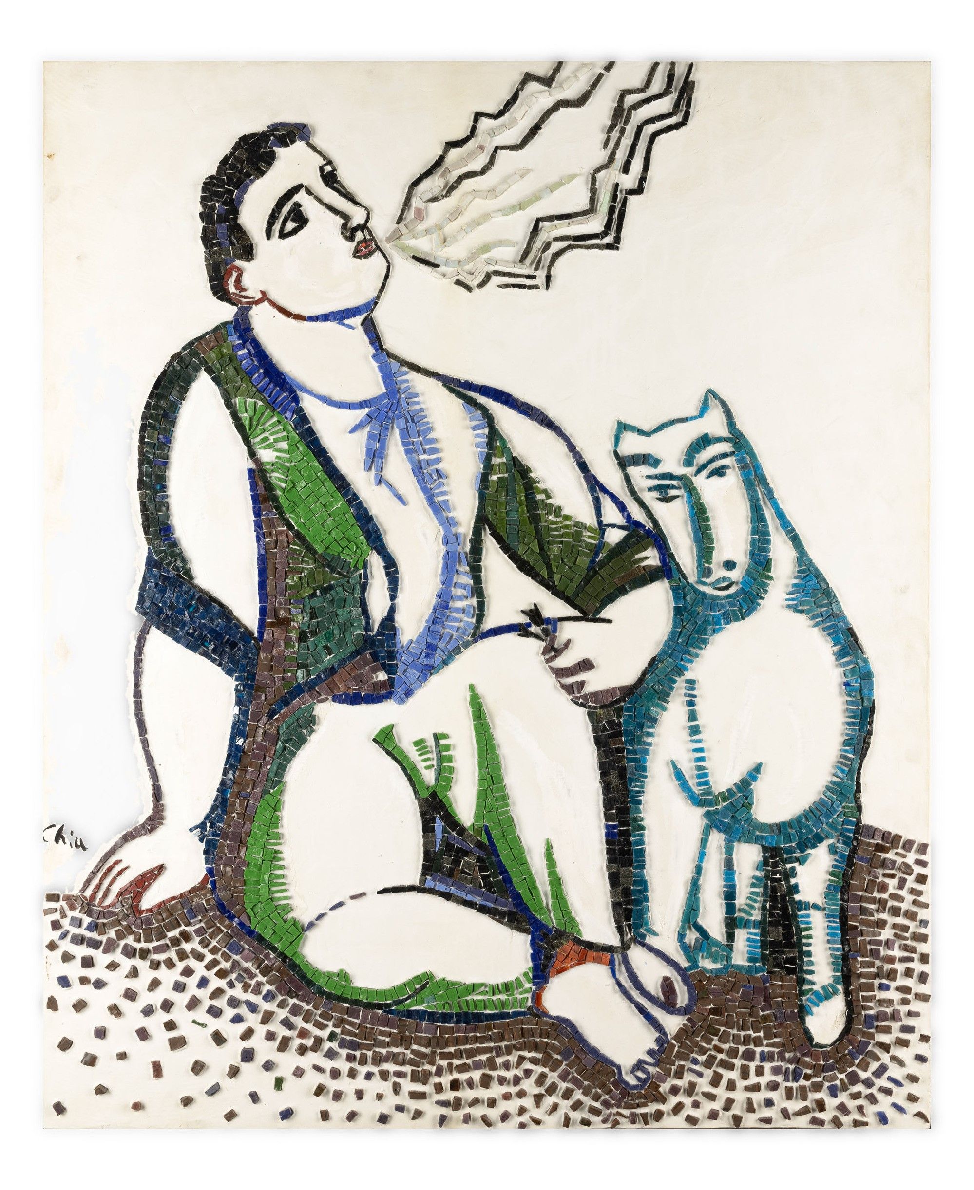 mosaico su tavola, Largh. 74 - Alt. 90 cm