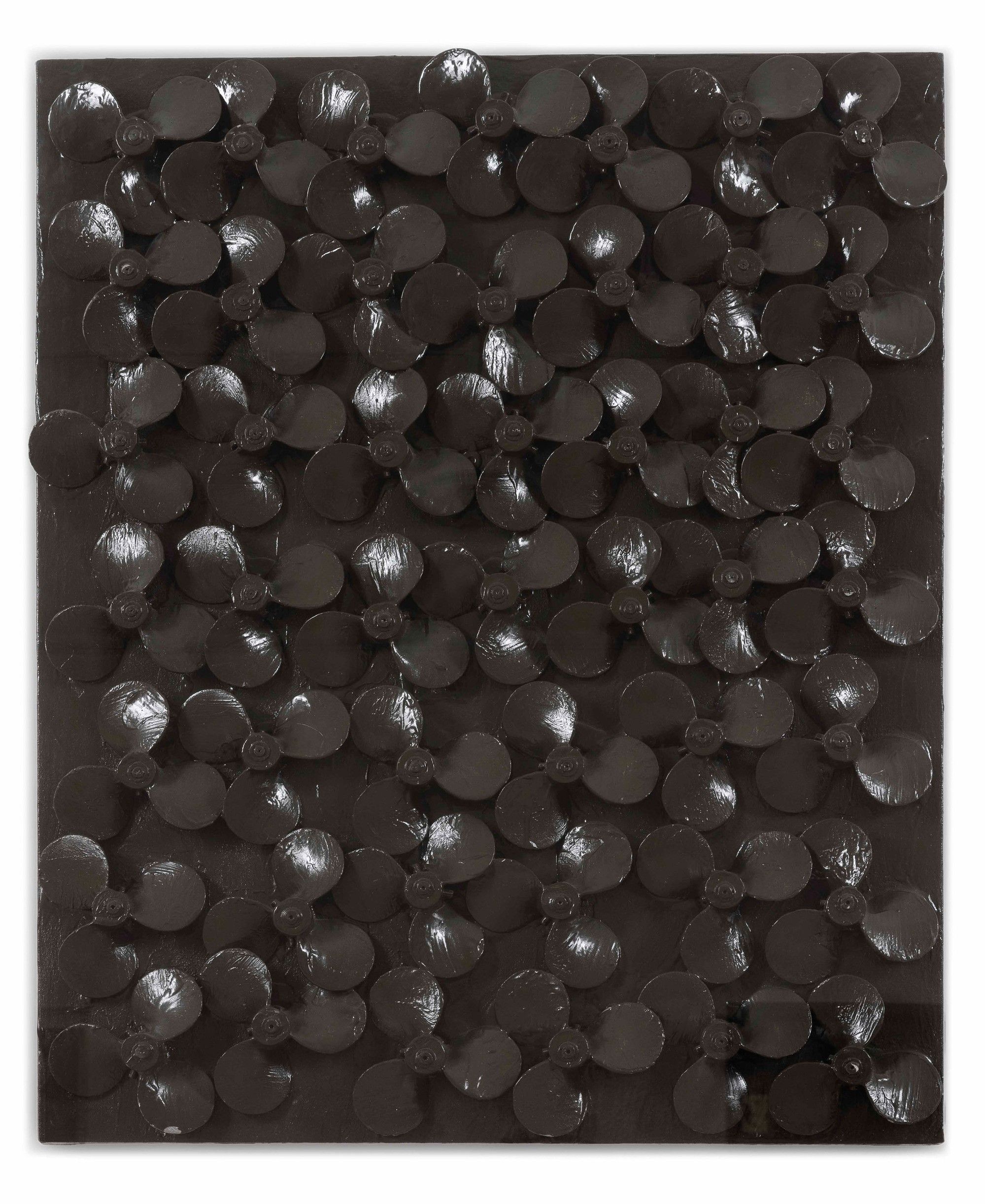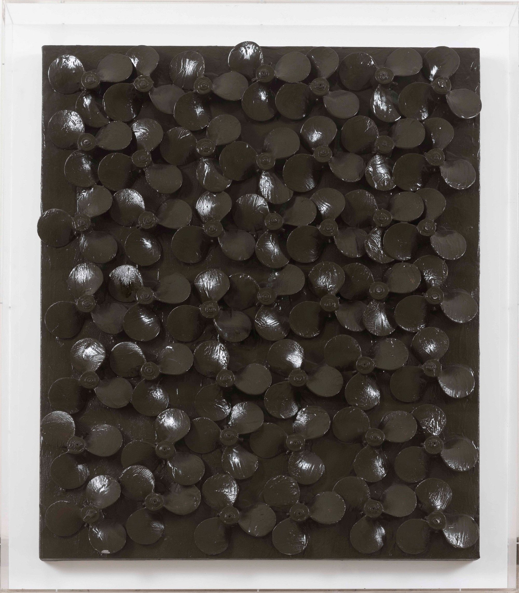 accumulo di eliche montate su tavola, immerse in pittura acrilica, Largh. 81,4 - Alt. 101,7 cm