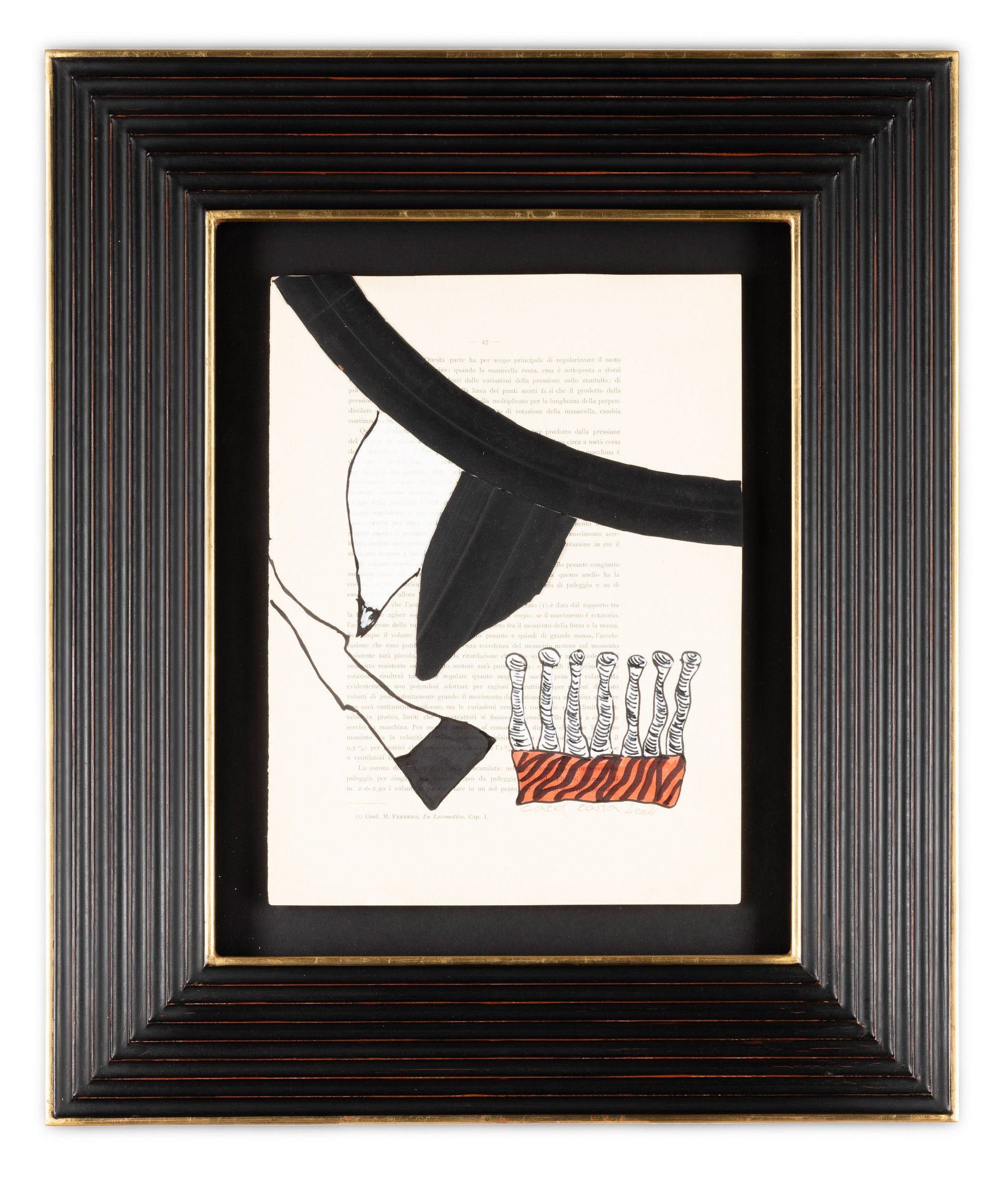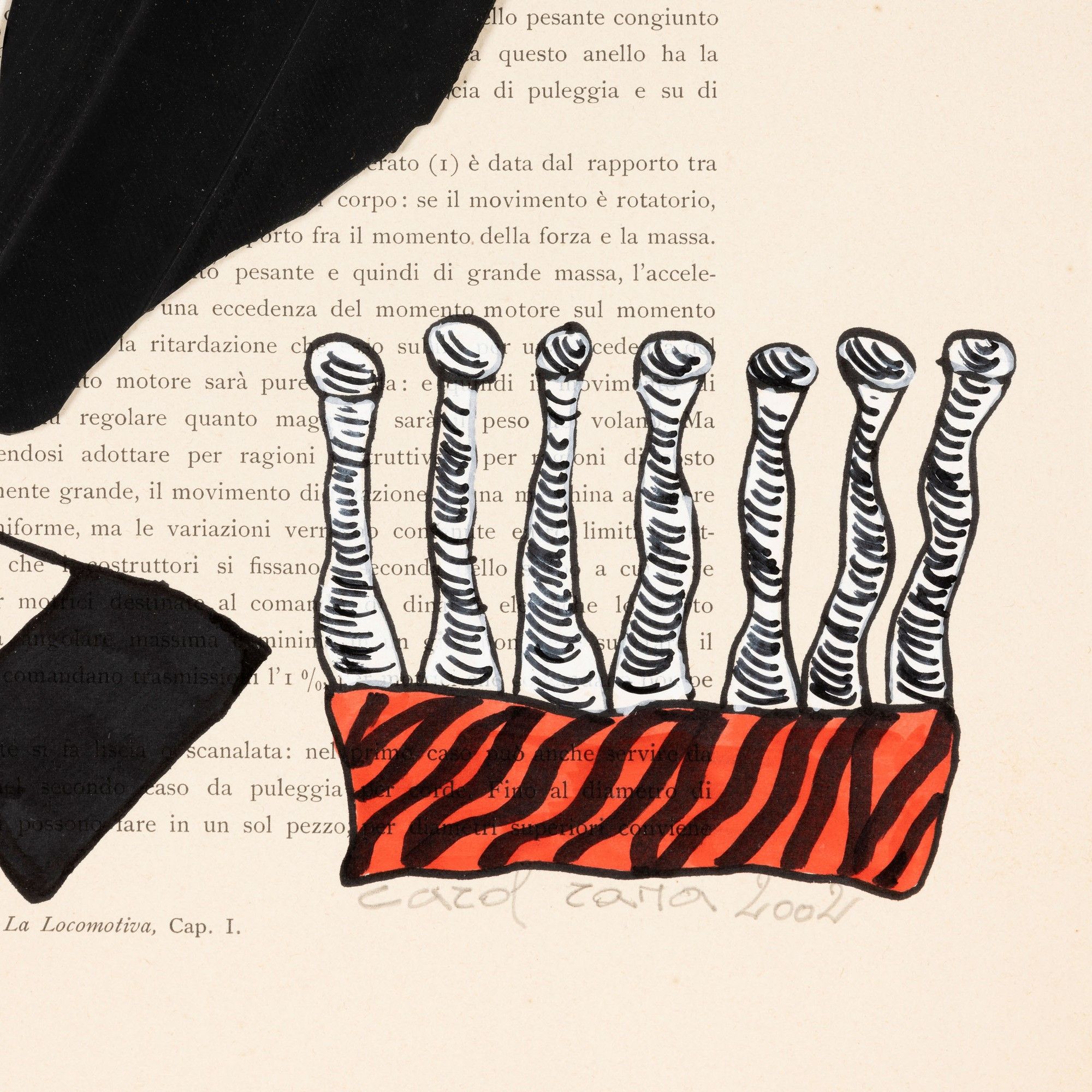 collage di camera d'aria, pennarello e tempera su pagina di libro, Largh. 24 - Alt. 32 cm