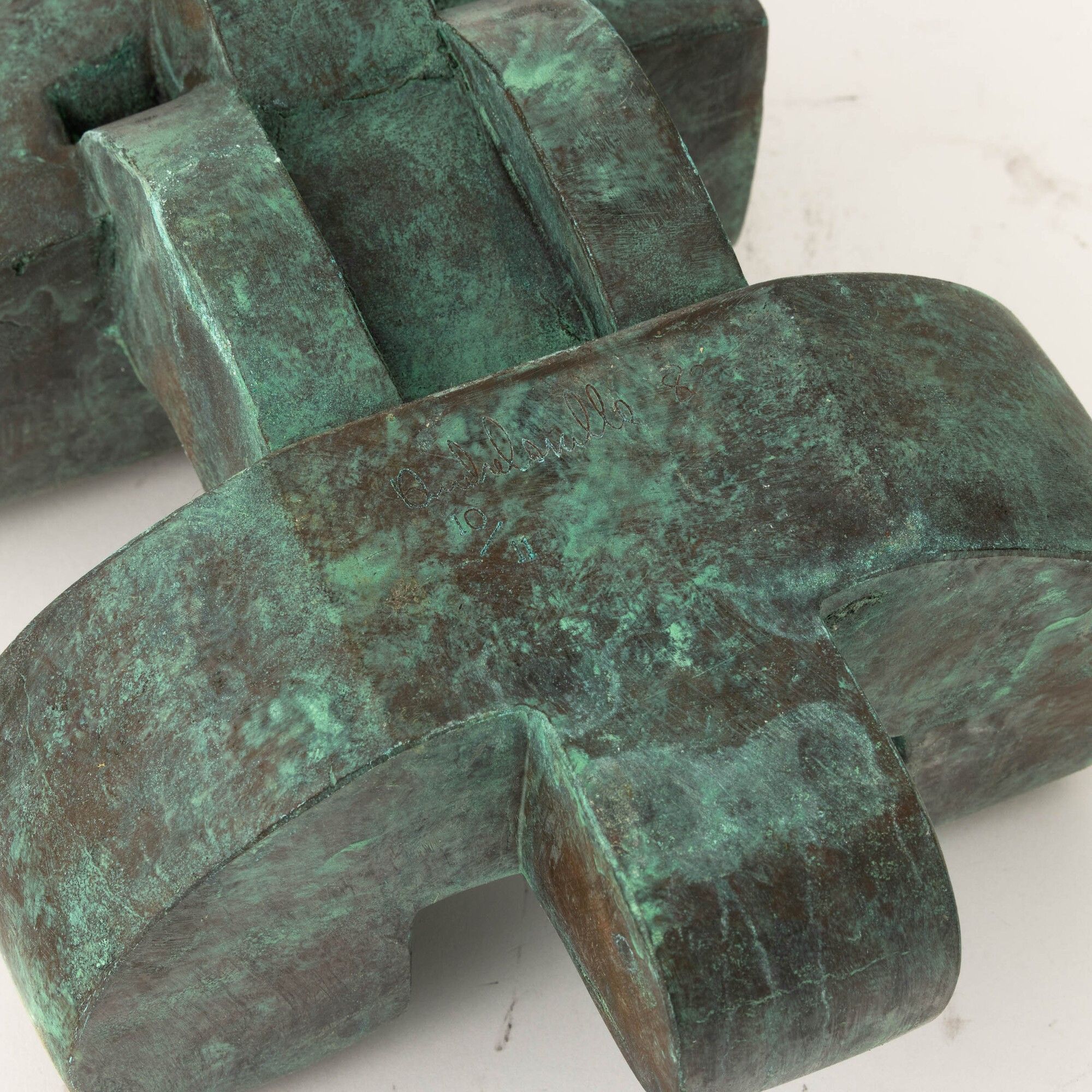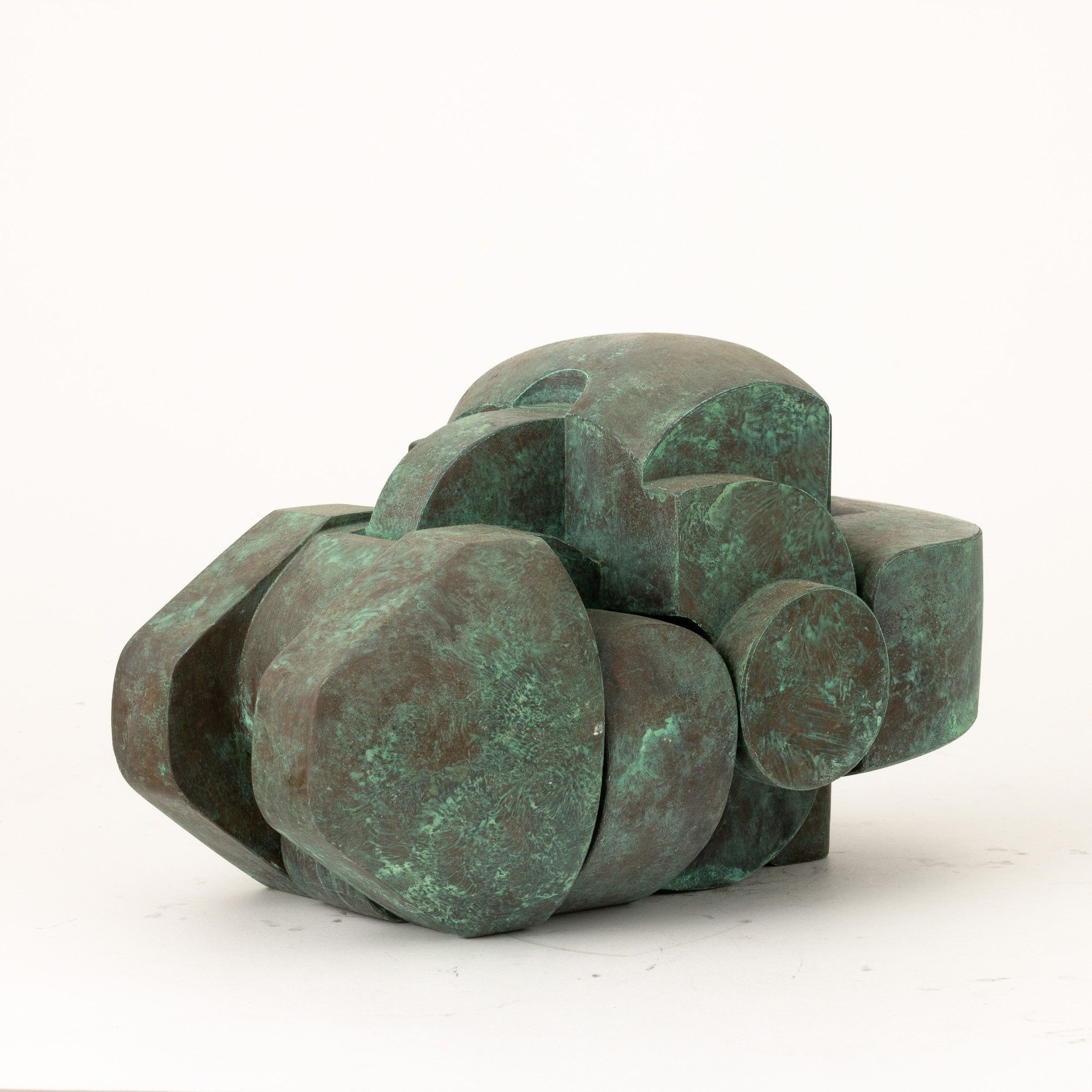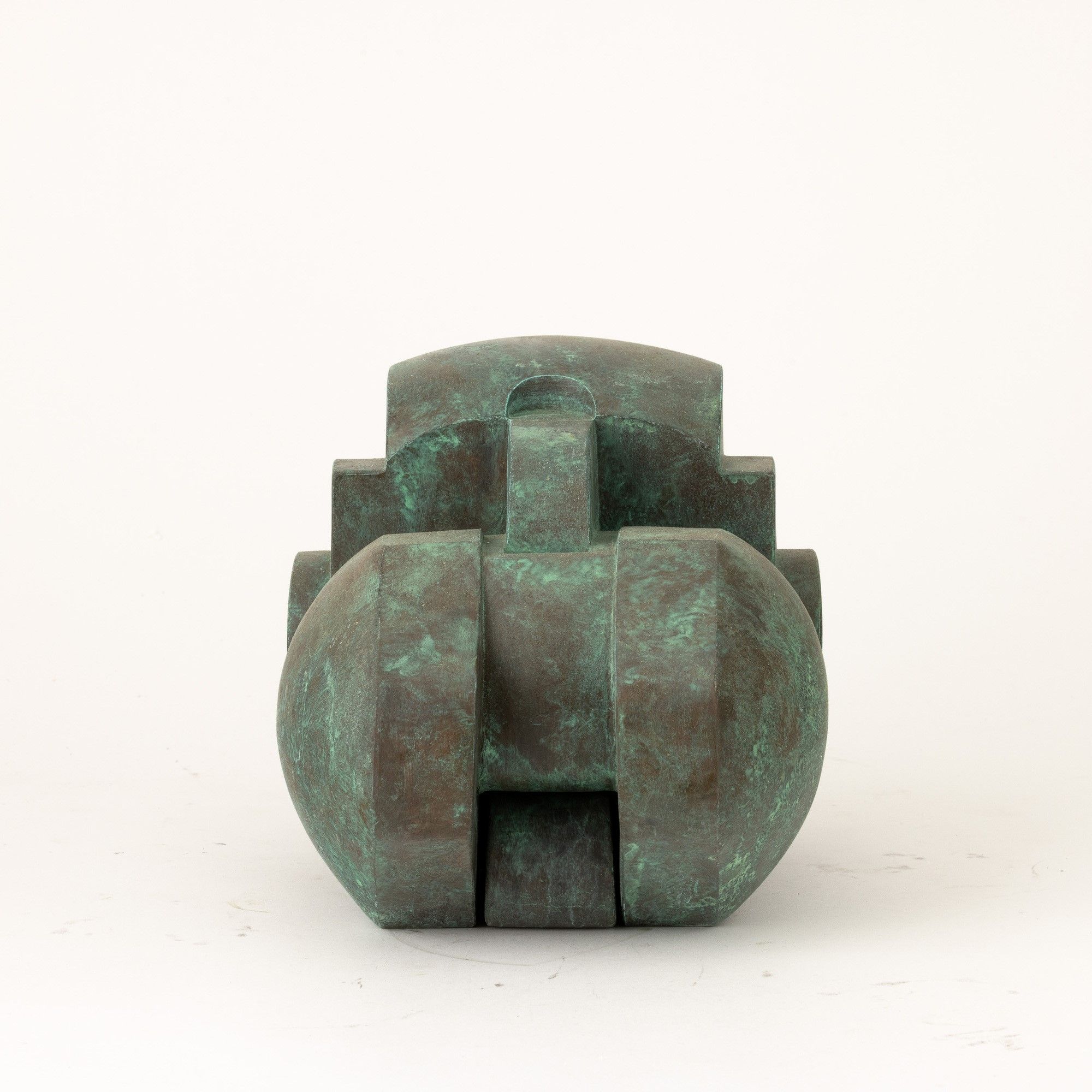 scultura in bronzo con patina verde, Largh. 22 - Prof. 20 - Alt. 35 Cm