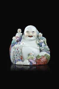 Budhai porcellana Famiglia Rosa con fanciulli Cina Repubblica XX Sec. 26x27 c [..]