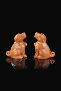 Coppia di statue raffiguranti Peng Zu Cina Repubblica XX Sec. 30 8x6 cm Presente certificazione CITES origi [..]