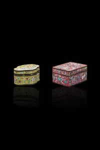 Coppia di scatolette in smalto con decori floreali Cina Repubblica XX Sec. 5 5x10 5 cm 6x9 5 cm
