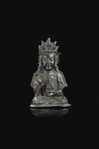 Buddha seduto in bronzo patinato desuto nella posizione del loto Cina dinastia [..]