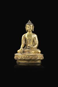 Buddha in bronzo dorato seduto nella posizione del loto Cina dinastia Qing XIX [..]