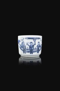Porta pennelli in porcellana bianca e blu decorata con personaggi Cina Repubblica XX Sec. 10x12 cm