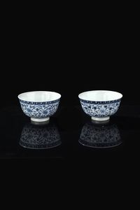 Coppia di coppette in porcellana bianca e blu con decori floreali Cina dinastia [..]