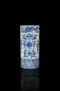 Porta cappelli in porcellana bianca e blu con decori floreali Cina Repubblica [..]