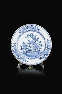 Piatto in porcellana bianco e blu con decori floreali Cina dinastia Qing XVIII [..]